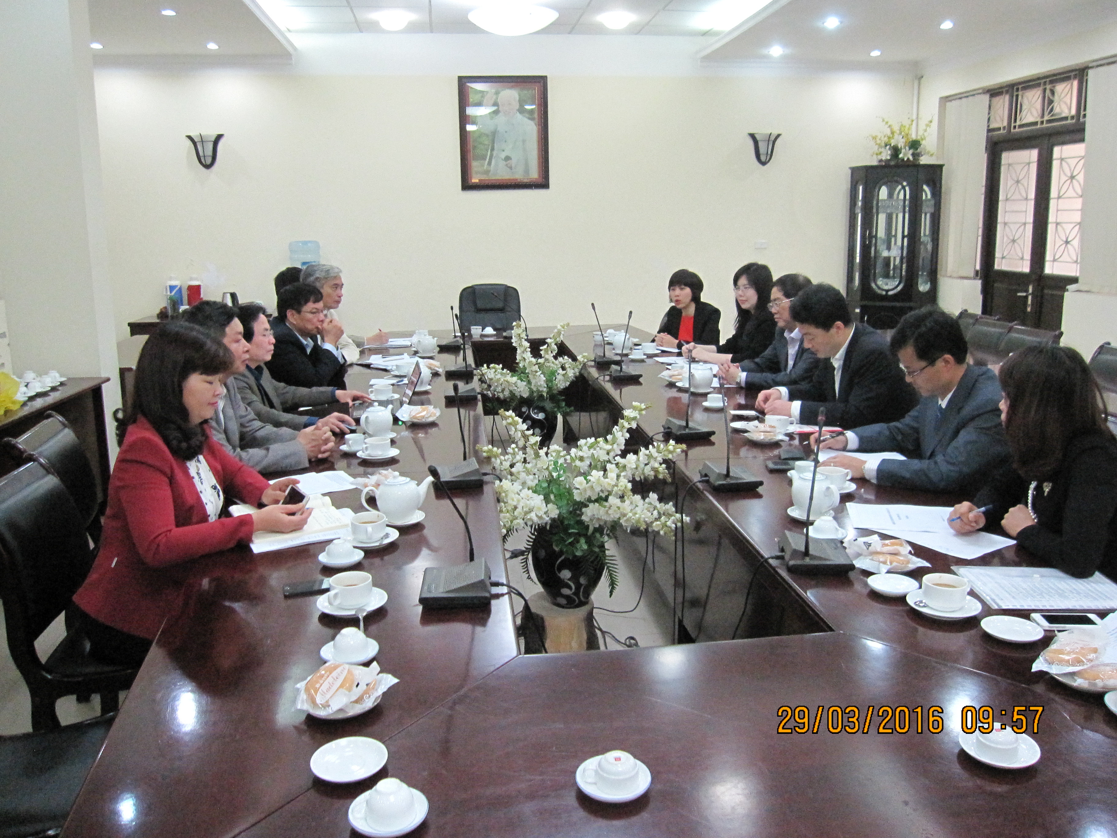 在越南教育管理学院,学校代表与该校代理院长、副院长、国际处负责人、教育系主任及学校财务总监等座谈,就“联合培养项目”的授课安排、毕业论文撰写与答辩、学位授予及财务等具体事宜进行了详尽讨论并形成共识。此外,双方还就扩展校际合作达成多项意向,包括:将现有的“联合培养项目”拓展为全英文授课和汉语授课两个语种;设立全英文授课的“教育技术应用与管理”和“临床心理学”硕士项目;设立全英文授课的“教育学”、“心理学”和“计算机”本科项目。期间,代表团还分别与“联合培养项目”的第一、二届学员座谈交流。