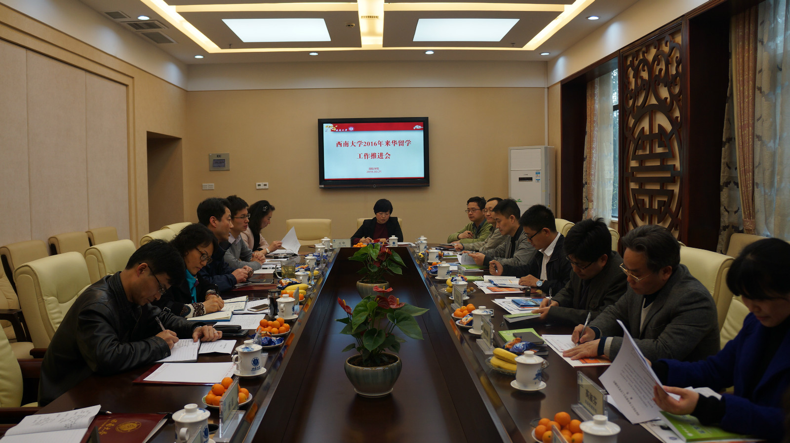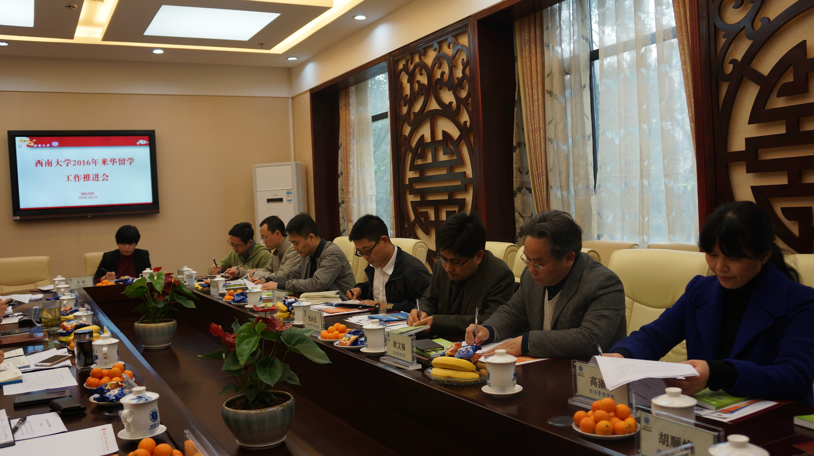 为进一步促进学校来华留学工作,伟的国际1946bv于3月21日召开了学校2016年第二次来华留学工作推进会。来自经济管理学院、资源环境学院、心理学部、工程技术学院以及新闻传播学院的相关负责人参会。会议由伟的国际1946bv副院长李航主持。