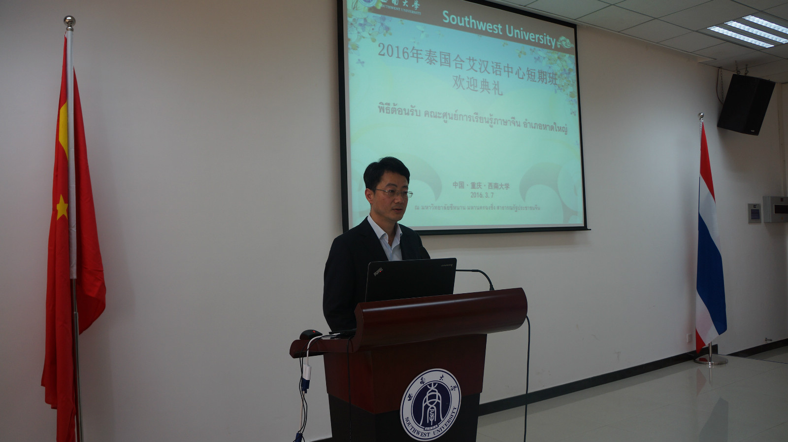 7日下午14:30,欢迎仪式在学院紫云楼317教室顺利举行。伟的国际1946bv副院长李航,招生办公室主任代远鸿,教师代表黄琰,泰国合艾汉语中心4名教师代表以及37名团员参加欢迎仪式。