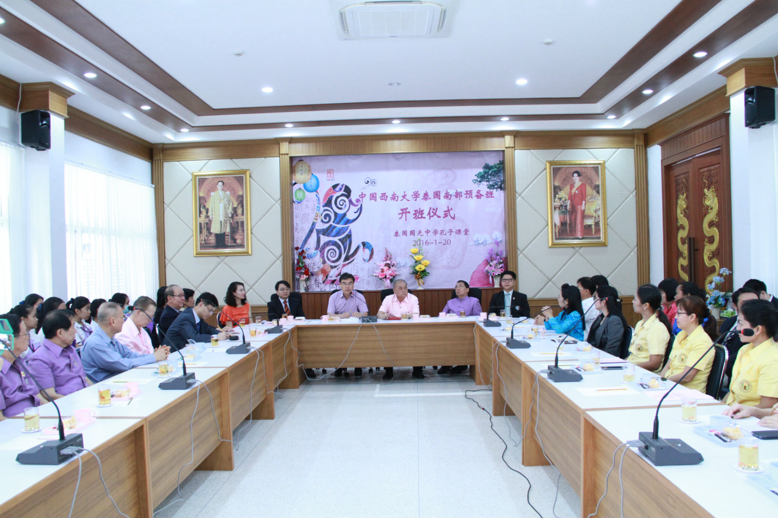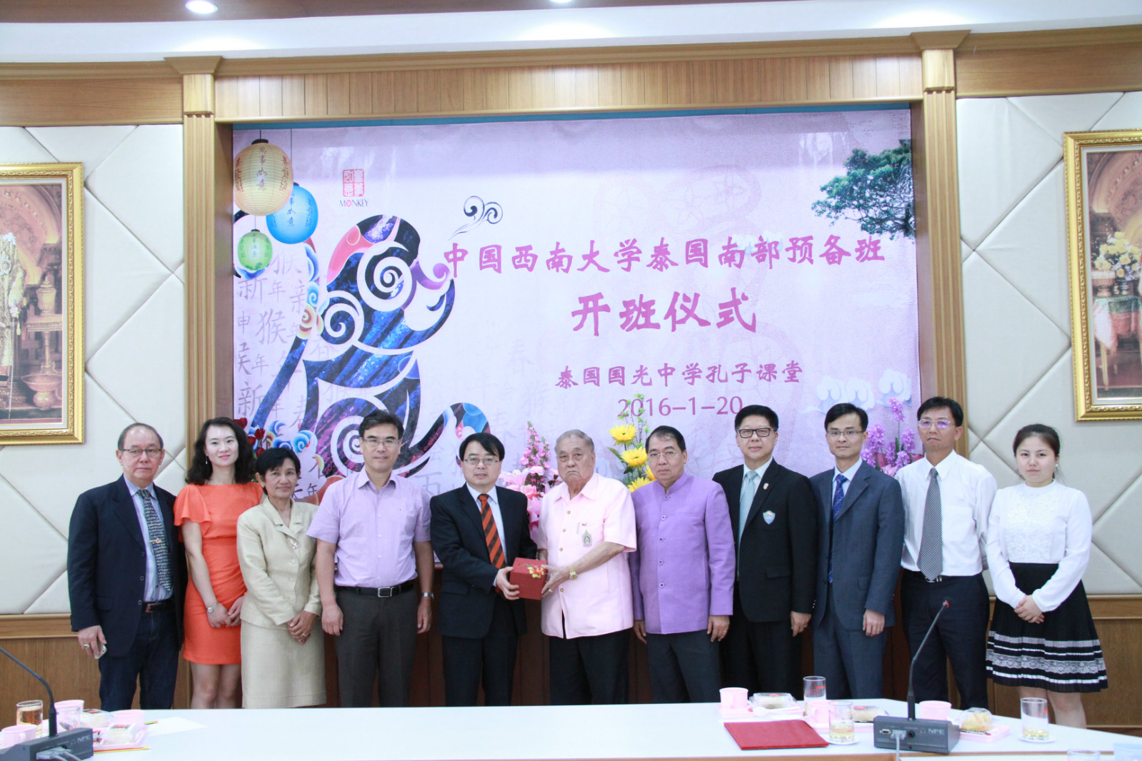 代表团一行参加了伟德源自英国1946泰国南部预备班开班仪式,并与参加仪式的泰南华文中学师生交流,介绍了我校来华留学教育情况,赠送最新修订的各类招生项目和奖学金项目宣传材料,并就2016年留学伟德源自英国1946的招生基本情况和最新要求做了说明。