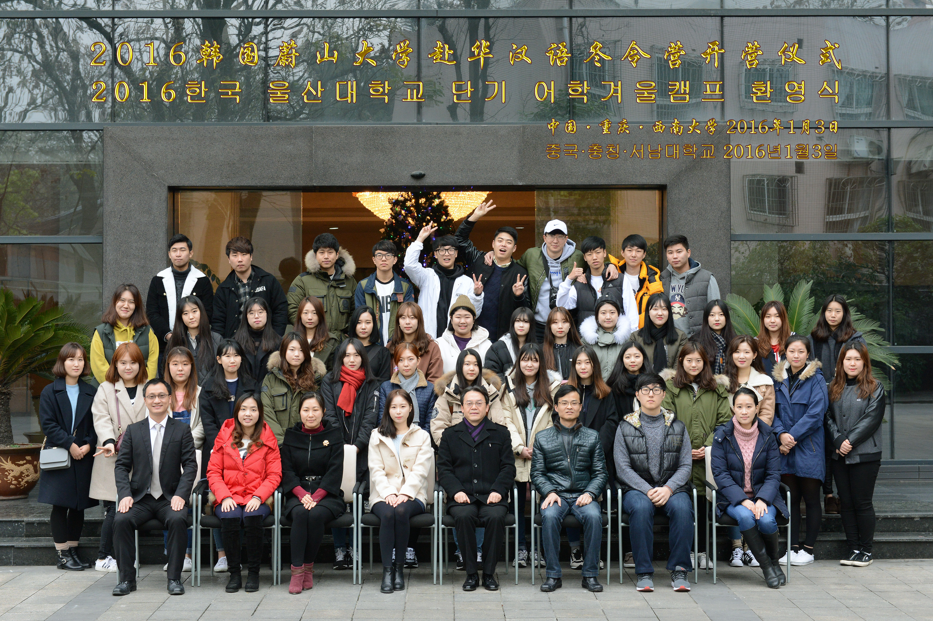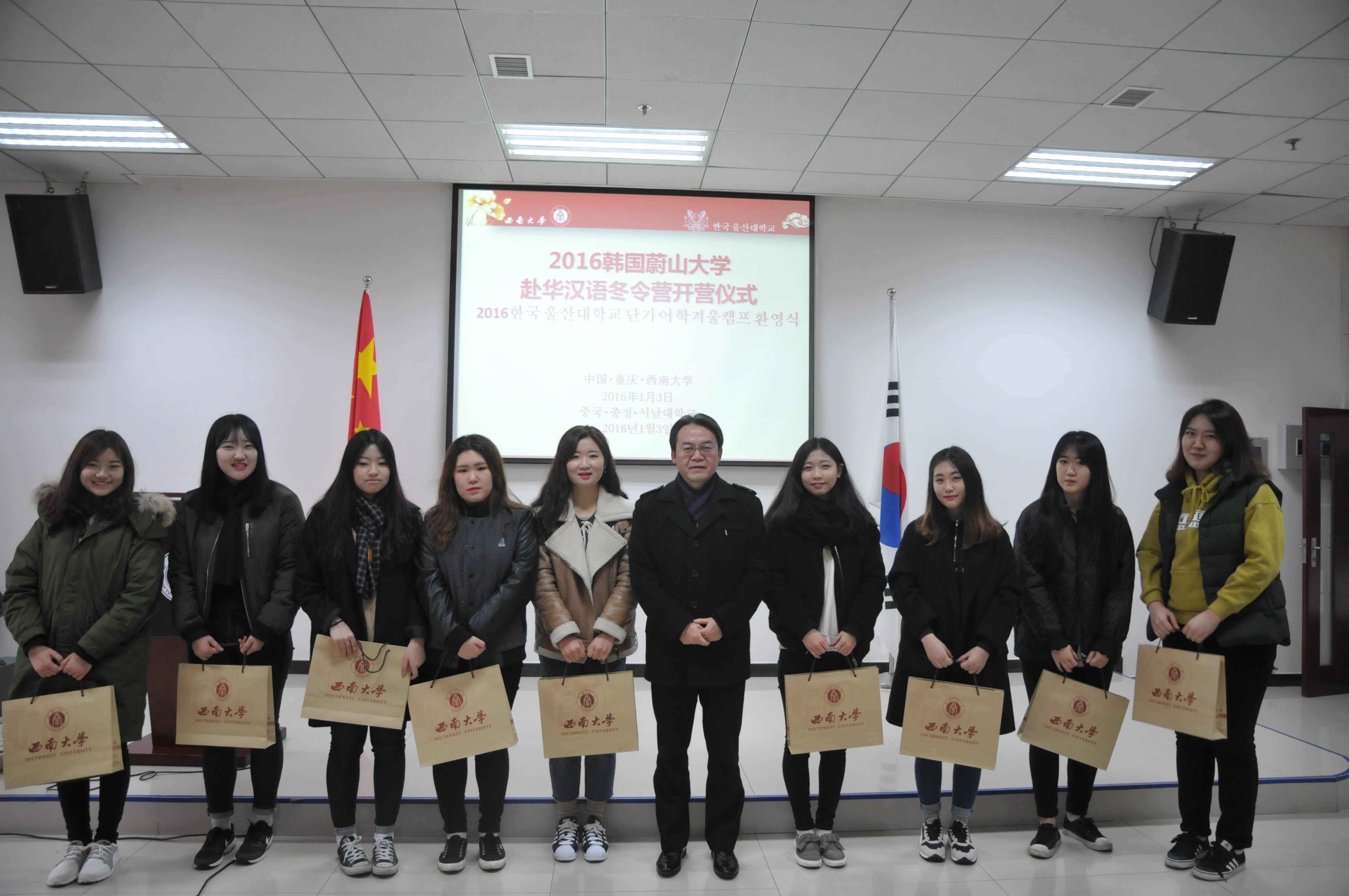 1月3日上午,2016年韩国蔚山大学来华汉语冬令营在伟的国际1946bv开营,该校40余名大学生将在我校交流学习一个月左右,体验中国文化和感知重庆。