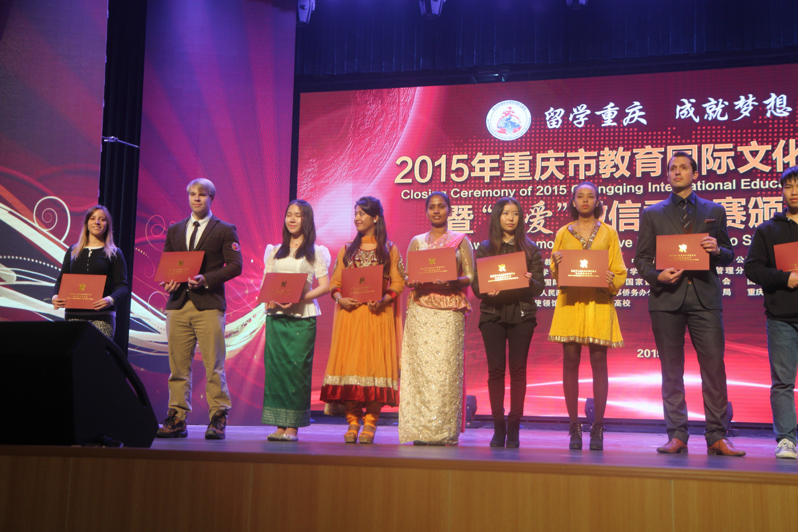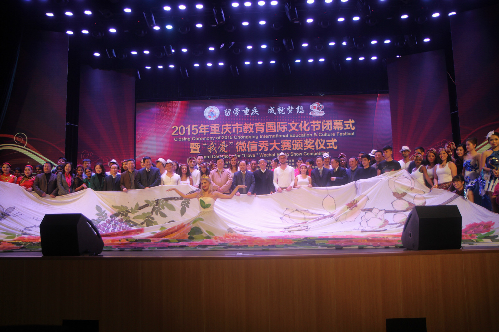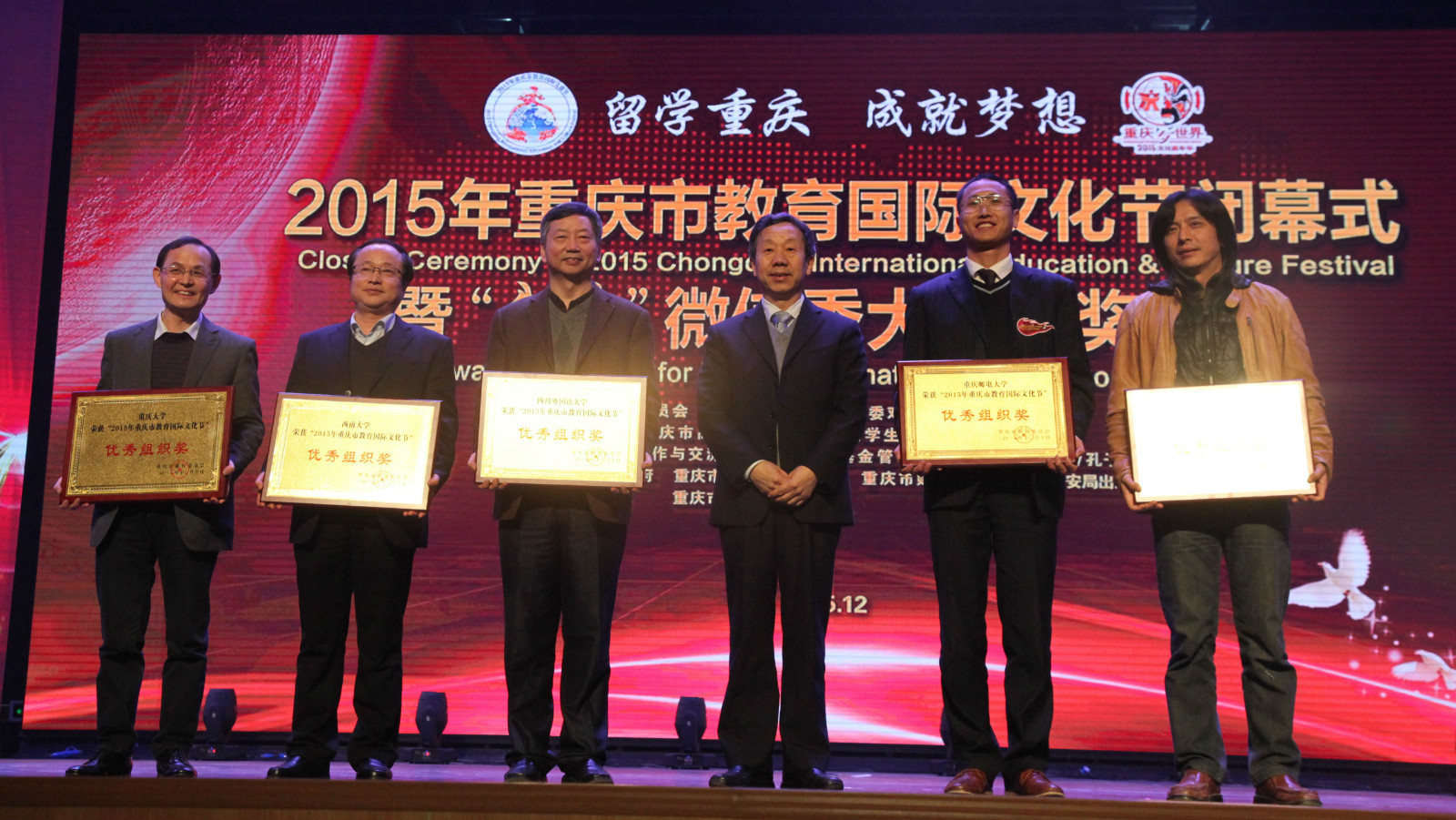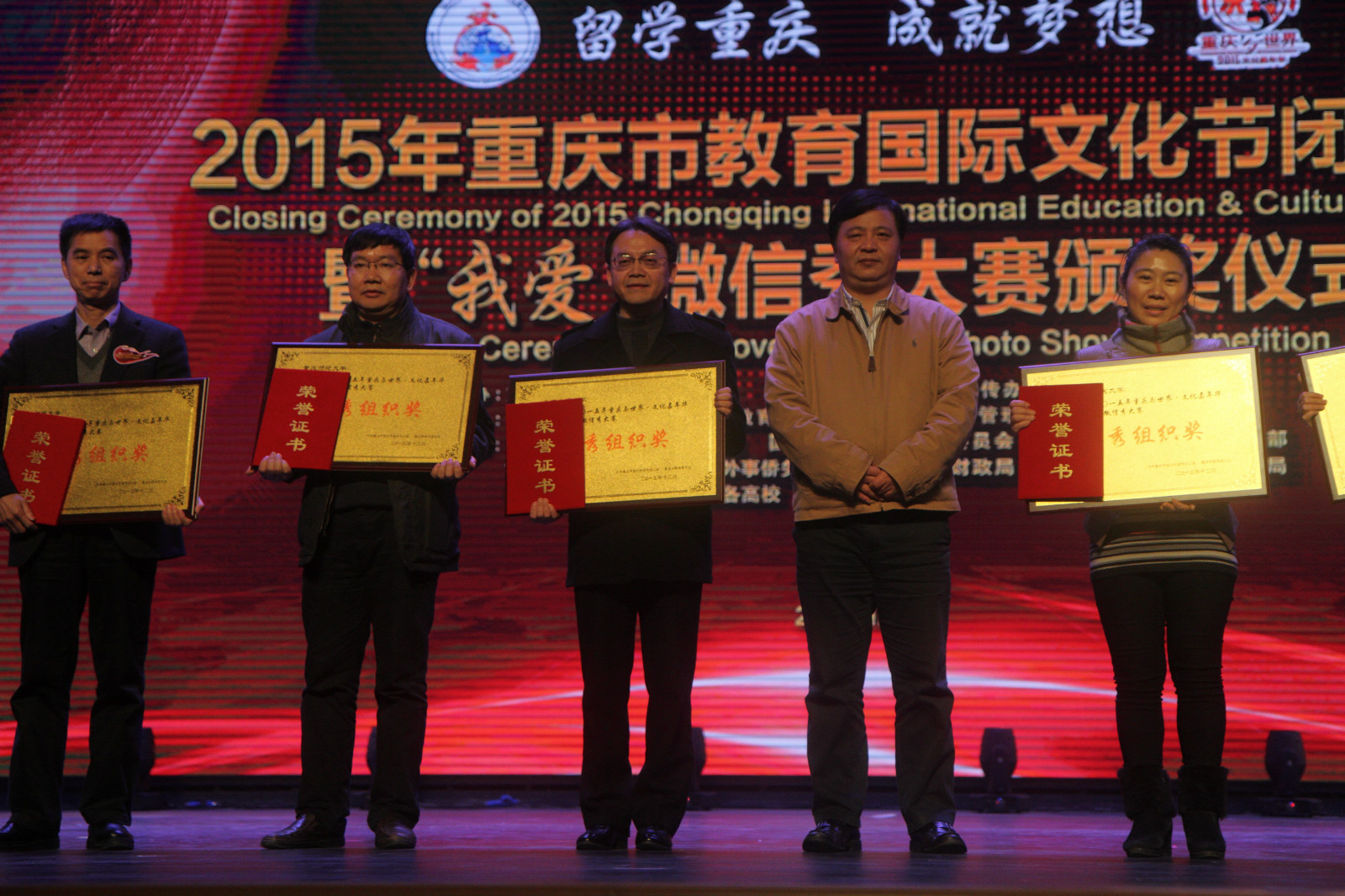 12月10日下午三时,2015年重庆市教育国际文化节闭幕式在重庆大学B区科学礼堂落下帷幕,我校荣获“2015年重庆市教育国际文化节优秀组织奖”和“2015年重庆与世界·文化嘉年华之‘我爱’微信秀大赛优秀组织奖”。