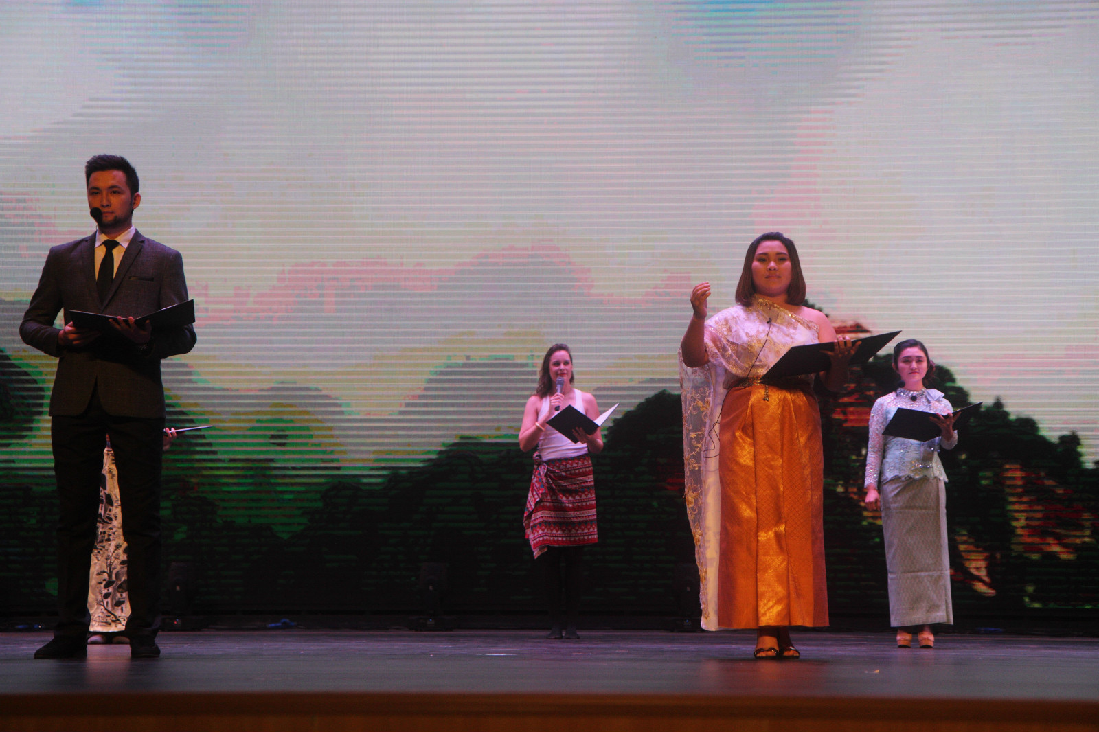 闭幕式首先通过短片回顾了文化节系列活动的精彩瞬间,并带来了重庆市各高校留学生的文艺表演。其中,由汉语大赛冠亚军、我校泰国留学生谢佳佳和哈萨克斯坦留学生凯撒领衔的留学生集体朗诵《留学重庆 成就梦想》表达了留学生对山城重庆的特殊情感。我校五名蒙古同学表演的舞蹈《美丽的蒙古姑娘》通过曼妙的舞姿展示了热情奔放的蒙古风情。随后,校长助理王为一教授,伟的国际1946bv刘猛书记以及我校美国留学生陈翔分别上台接受了市政府和市教委领导的颁奖。