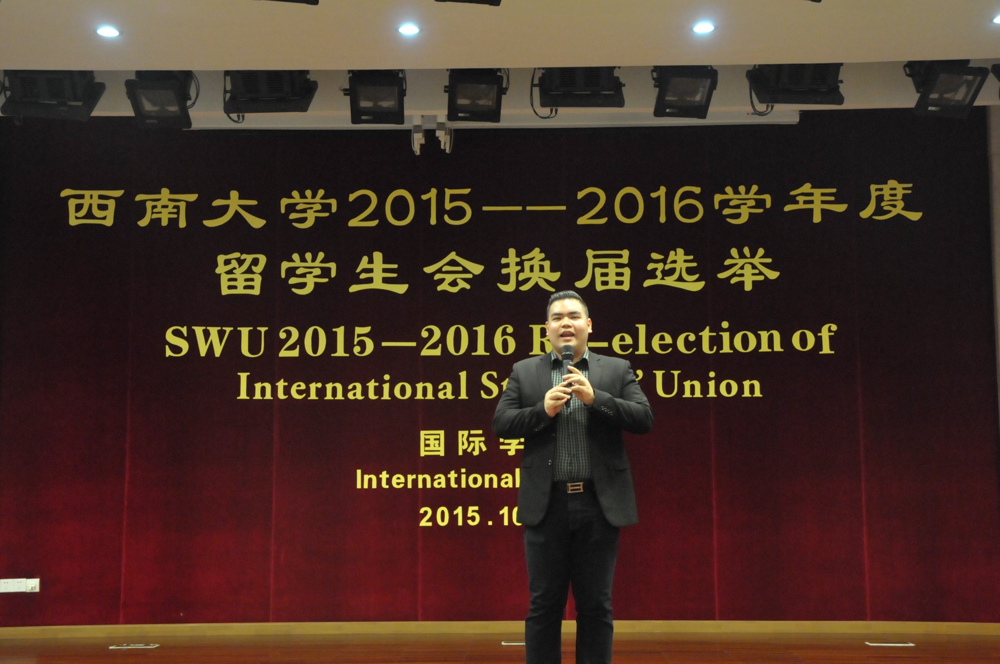 10月10日下午四点,伟德源自英国19462015-2016年度留学生会换届选举大会在紫云楼一楼国际报告厅隆重举行。16名候选人就新一届留学生会的主席、副主席和秘书职位展开竞选,全校400余名留学生参加选举大会。