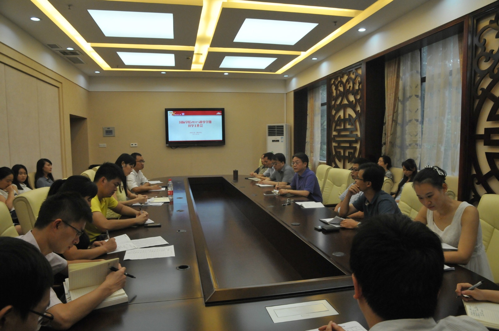2015年9月4日下午3点半,伟的国际1946bv2015-2016学年秋季学期开学工作会在紫云楼签约室举行,张发钧院长主持会议,刘猛书记、张家政副院长及其他教职工参加会议。