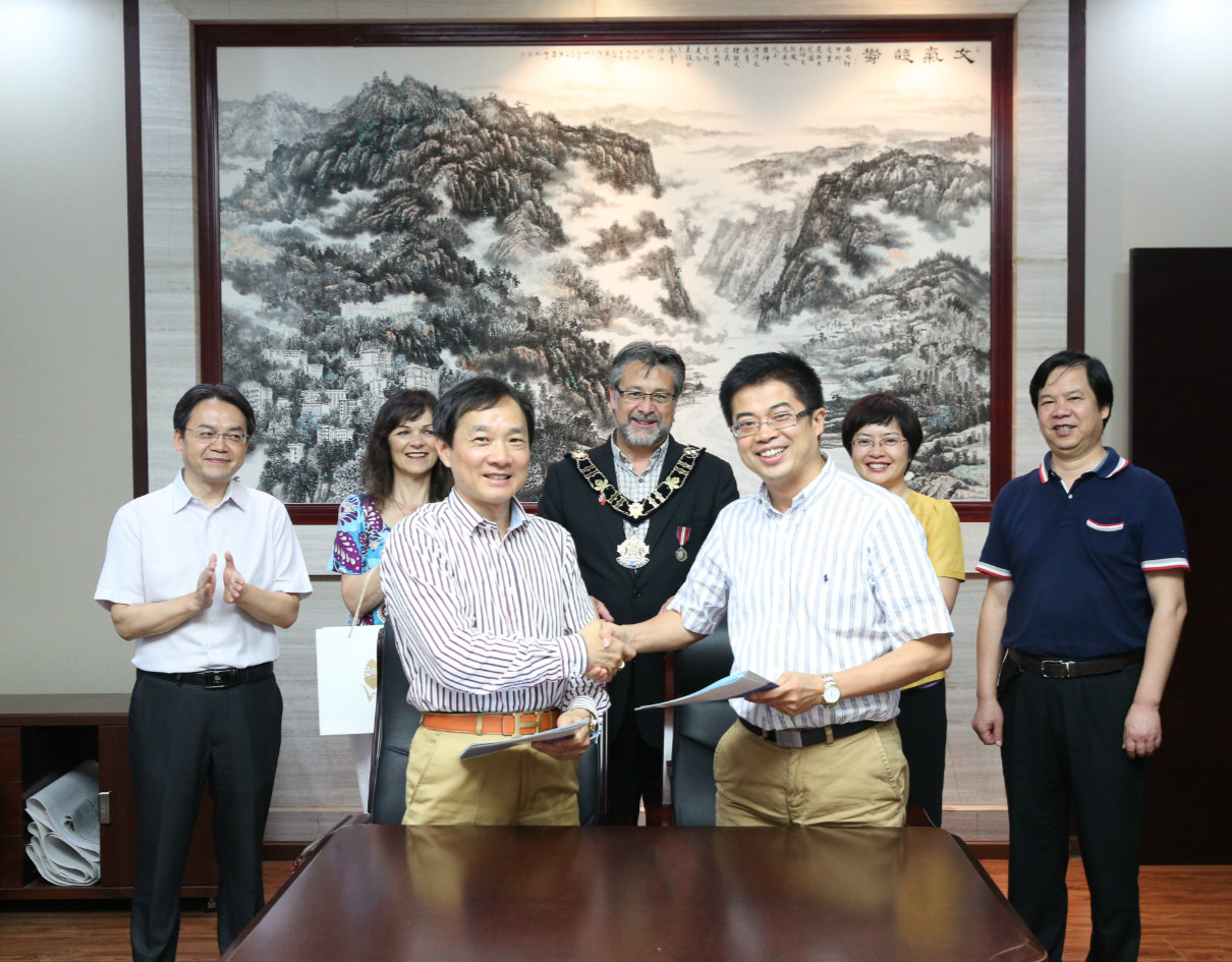 6月6日,加拿大不列颠哥伦比亚(BC)省鲍威尔市(City of Powell River)市长Dave Formosa先生,温哥华岛大学(Vancouver Island University)鲍威尔校区校长Micki McCartney女士,加拿大BC省SBS(Sino Bright School Board)海外学校局主席欧阳全先生一行莅临伟的国际1946bv访问。张发钧院长接待了加拿大客人,并代表学院与SBS海外学校局主席欧阳全先生签署了合作谅解备忘录,双方拟在互设办公室,温哥华岛大学学生来校游学等项目上开展合作。