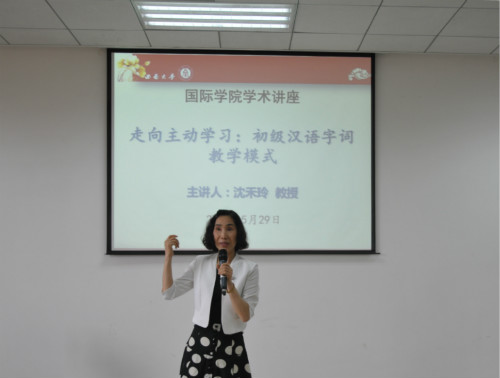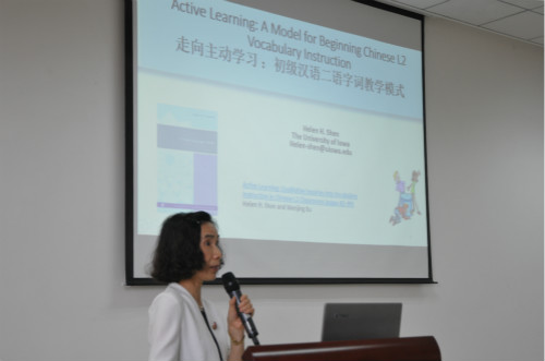 2015年5月29日下午,美国爱荷华大学亚洲语言文学系博士生导师、中文部主任、系研究生部主任沈禾玲教授在伟的国际1946bv317报告厅举行了题为《走向主动学习——初级汉语字词教学模式》的学术讲座。伟的国际1946bv汉语国际教育硕士中外研究生及全体教师参加讲座。