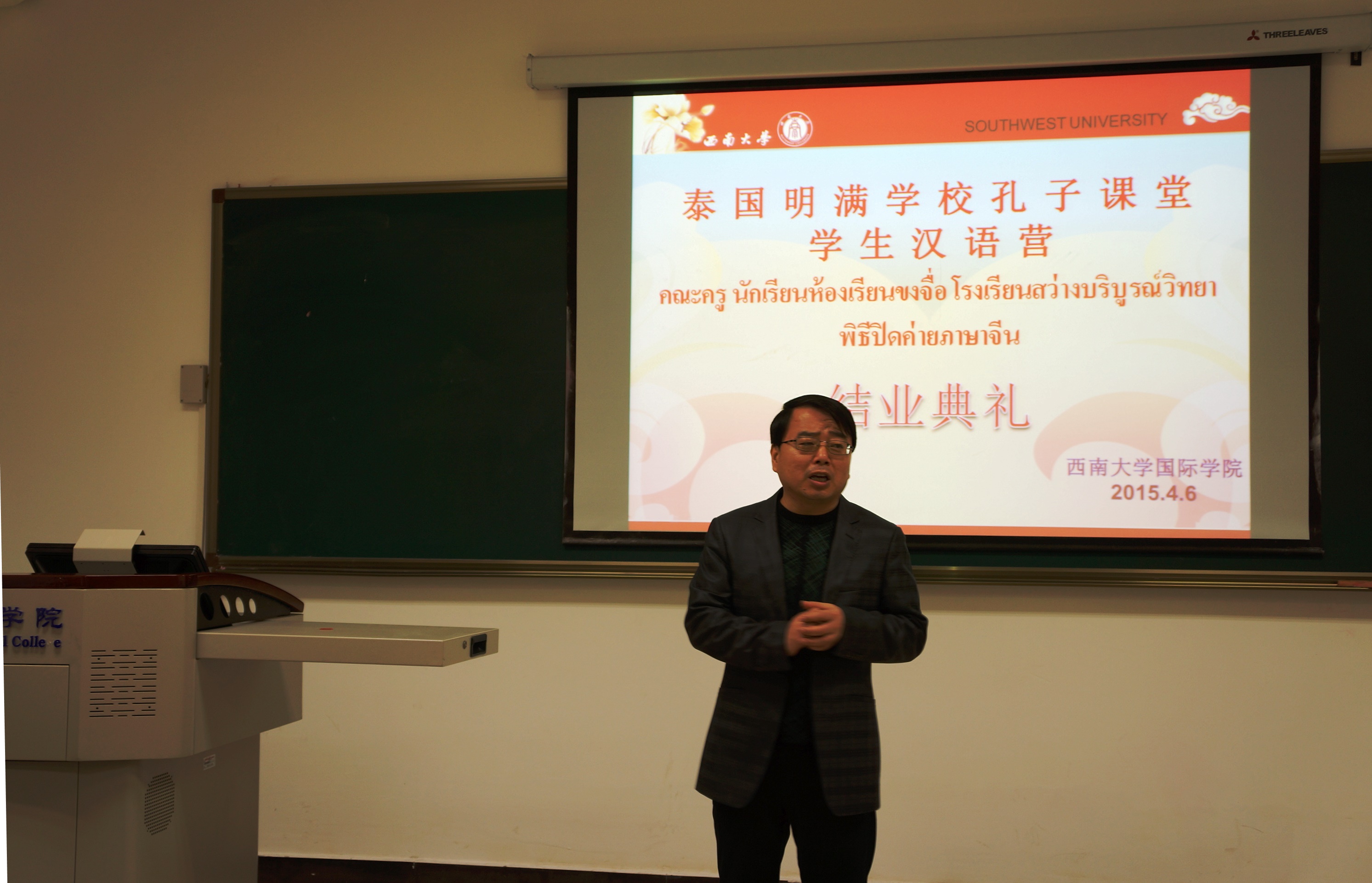 张家政副院长代表伟的国际1946bv祝贺本次汉语营圆满结束,表达了对即将回国的泰国同学的不舍之情,同时,他也希望本次汉语营能够成为大家的新起点,希望学员们能够记住中国、记住重庆,带着对伟德源自英国1946的美好印象回到泰国。