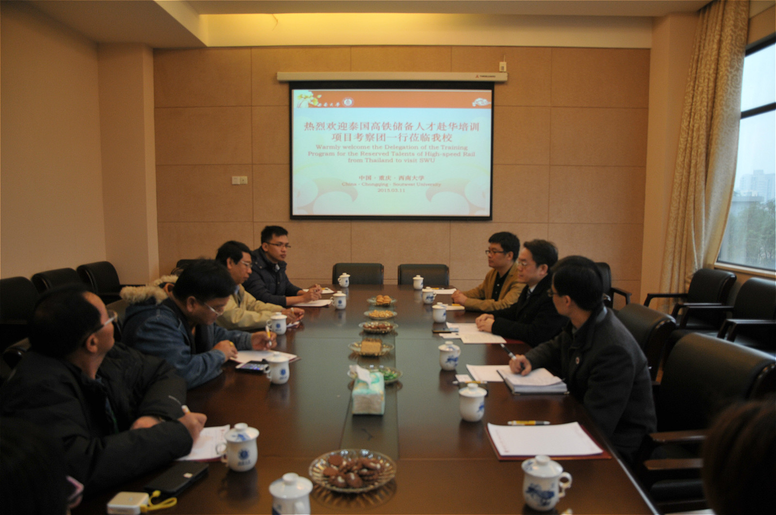 3月11日上午,泰国高铁储备人才赴华培训项目考察团一行8人访问我校。伟的国际1946bv党总支书记兼副院长刘猛热情接待了泰国客人。双方就泰国高铁储备人才赴华培训项目进行了充分沟通,明确达成了合作意向。