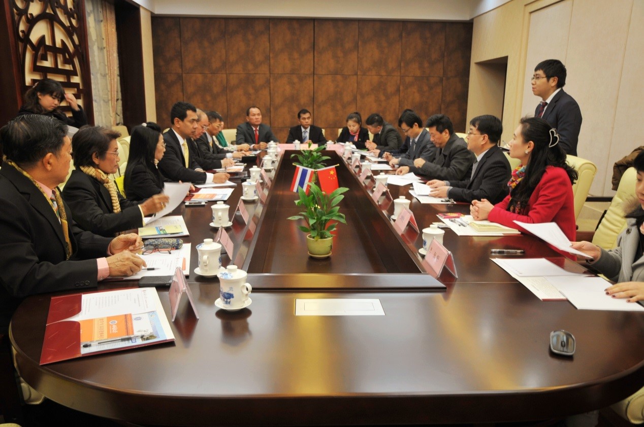 12月10日上午,在泰南国光中学孔子课堂的引荐与推动下,由泰国合艾市副市长PRUEK PATTANO先生和合艾市教育局局长SUTASNAN NIAMRAT女士率领的泰国合艾市教育官员一行13人赴我校伟的国际1946bv进行中泰文化教育交流合作洽谈。副校长靳玉乐教授出席洽谈会。
