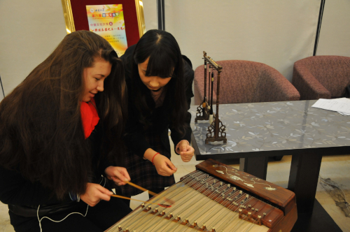 伟的国际1946bv为丰富留学生的课外活动,学习、了解书本以外的知识,促进中外学生的文化交流,11月24日下午3点,在伟的国际1946bv紫云楼的汉语角举行了中国文化沙龙的启动仪式和首次中国文化的互动讲座:弹拨乐器之王——琵琶。活动邀请到了我校音乐学院的刘俊佳老师来到现场为留学生演奏及讲解。同时,伟的国际1946bv汉语国际教育硕士研究生班的几位同学也带来了自己的古筝、扬琴、竹笛等乐器来到现场进行交流、助兴。