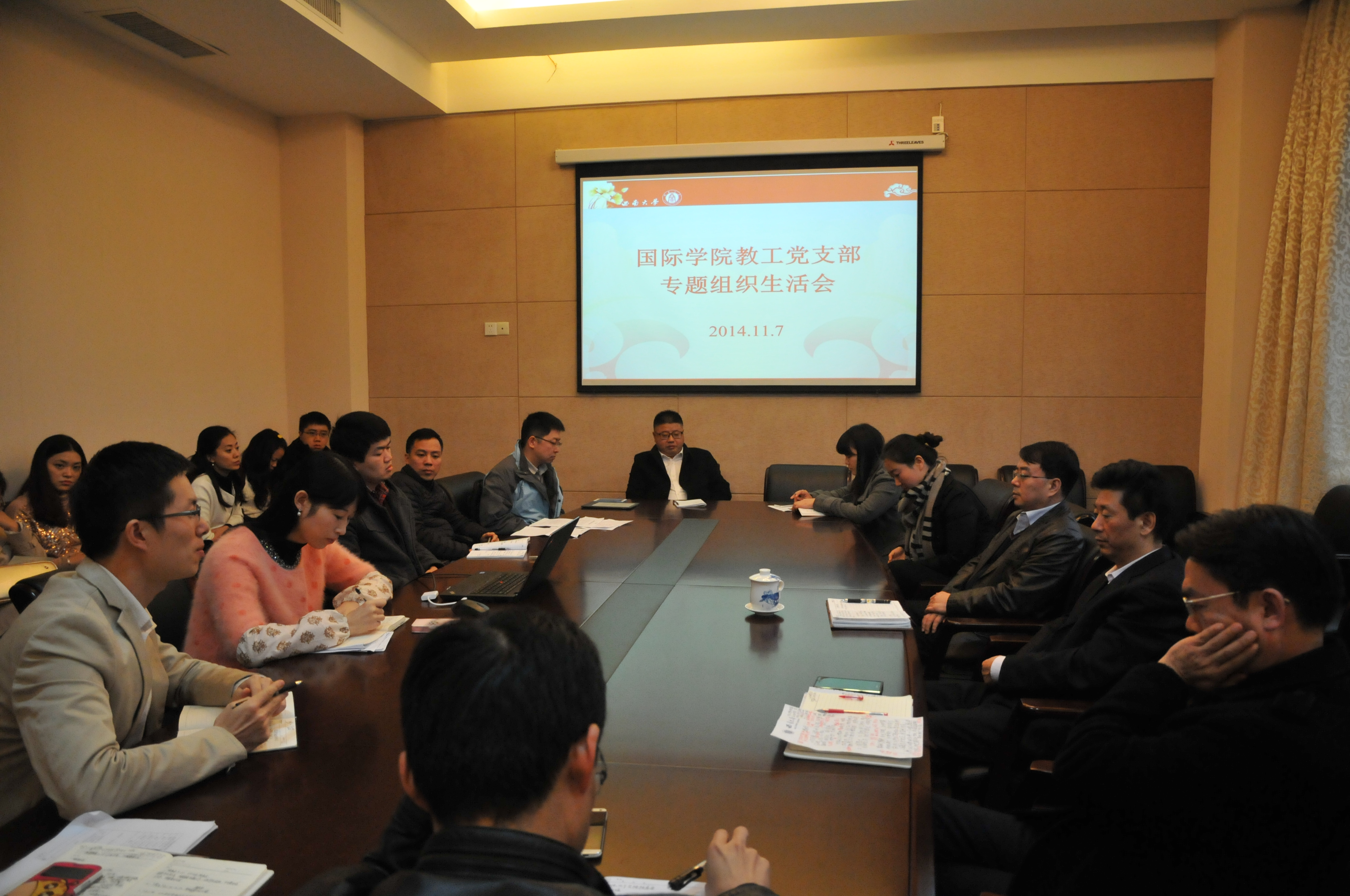 2014年11月7日,伟的国际1946bv全体教职工党员在紫云楼310会议室召开专题组织生活会。党员同志们结合本职工作,就如何发挥党员的先锋模范作用,为学院建设和发展作贡献这一议题进行了热烈的发言和讨论。副校长靳玉乐应邀出席此次组织生活会。
