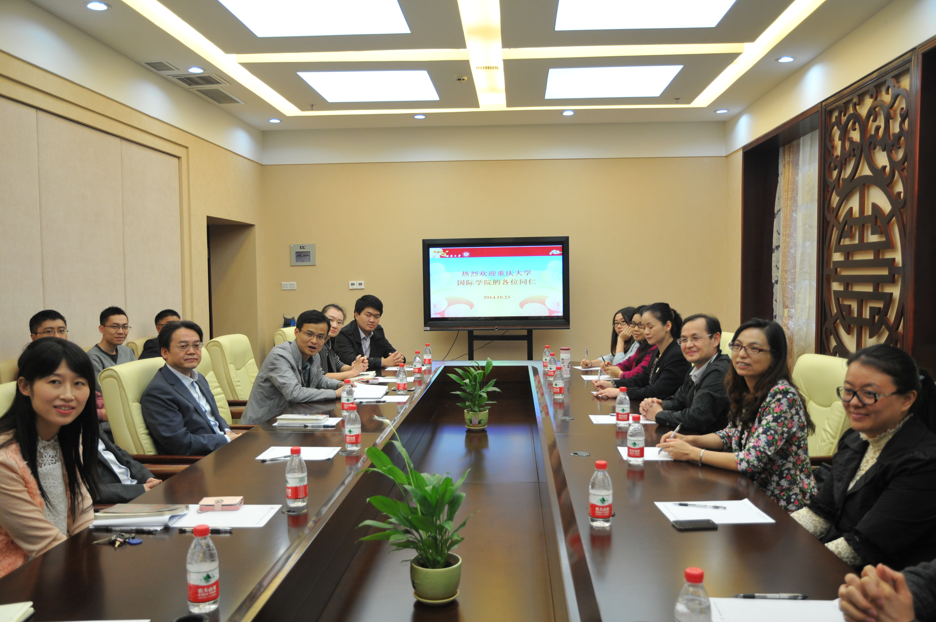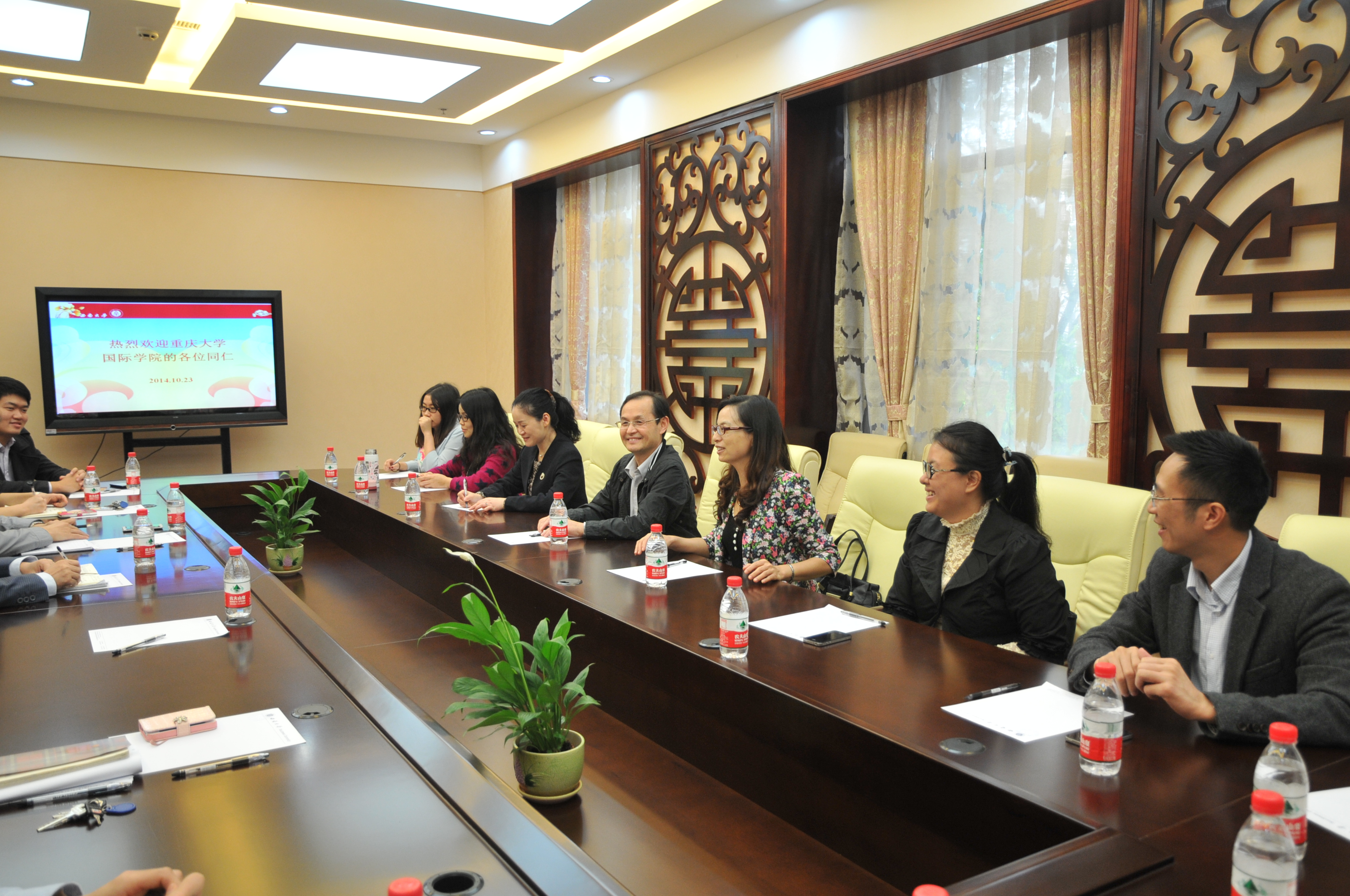 2014年10月23日下午, 重庆大学伟的国际1946bv教工党员在院长赵成平的带领下来我校伟的国际1946bv调研。伟的国际1946bv党总支书记兼副院长刘猛带领全体教工党员热情接待了赵院长一行。