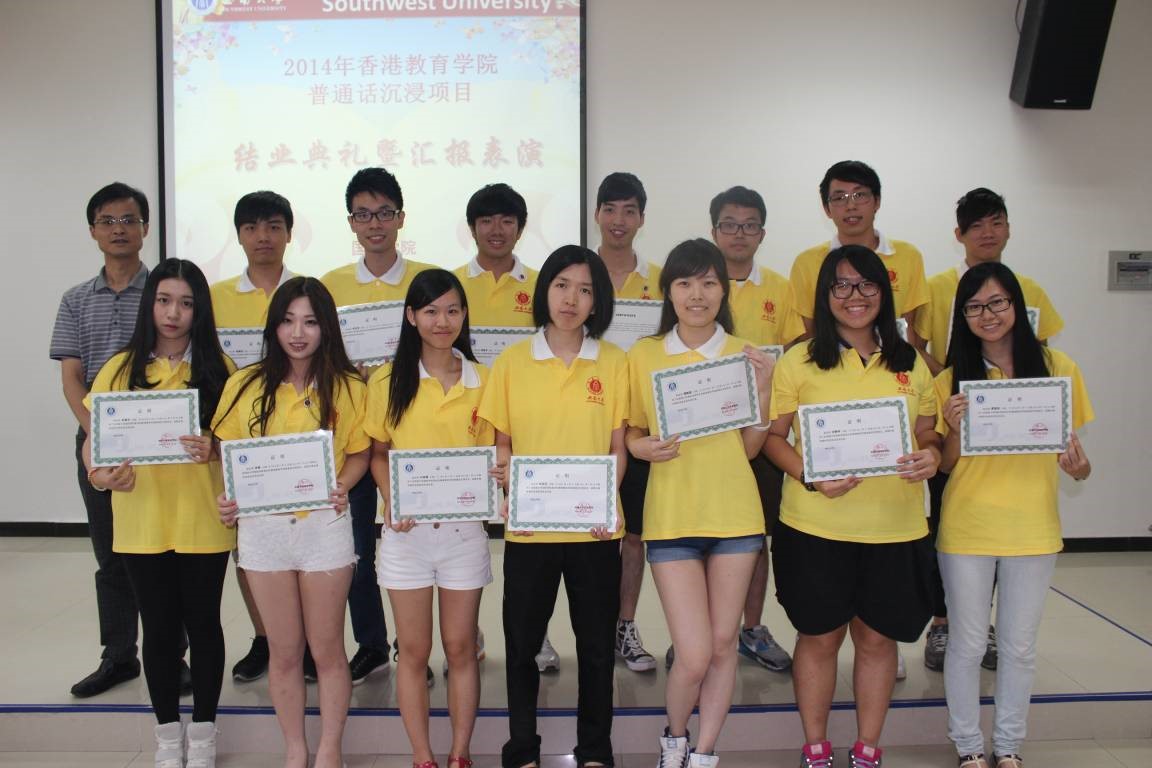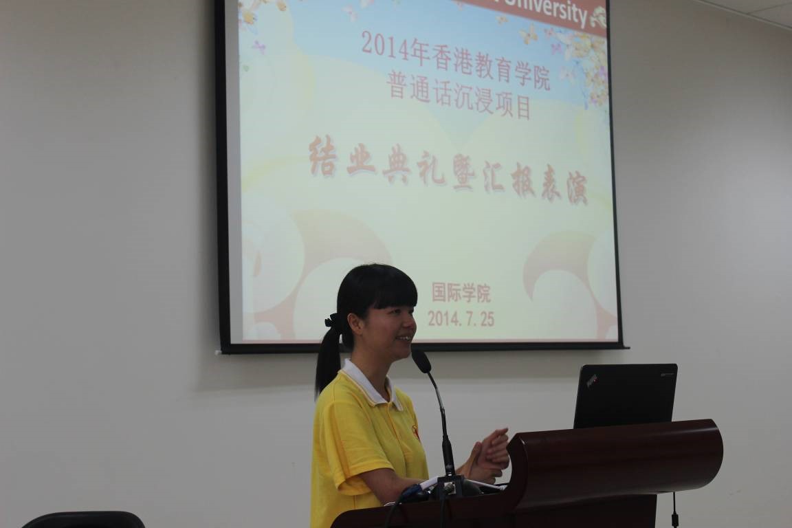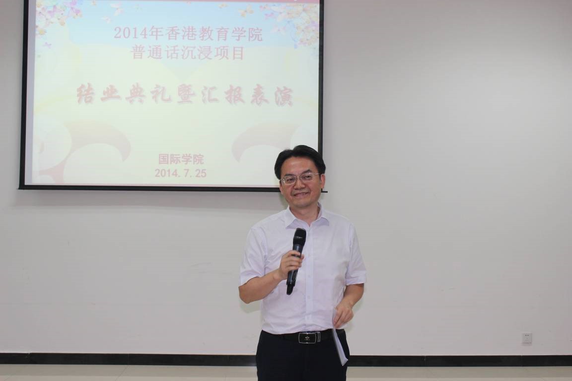 2014年7月25日下午4:30香港教育学院中国语文教育荣誉学士普通话沉浸项目结业典礼暨汇报演出在紫云楼317教室隆重举行,伟的国际1946bv党总支书记兼副院长刘猛、项目相关负责老师及任课教师出席该典礼。