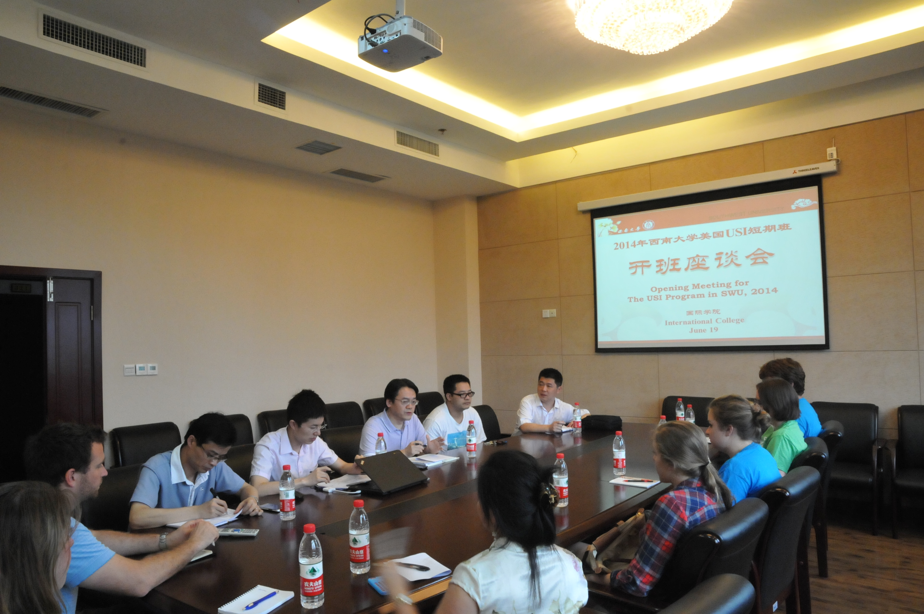 6月19日,伟的国际1946bv在紫云楼310会议室举行了简朴热烈的美国南印第安纳大学(USI)暑期项目开班仪式。副院长刘猛,招生办主任代远鸿、教师代表王勇、黎力, USI项目带队老师庞琳以及全体留学生、中国语伴志愿者参加了开班仪式,仪式由该班班主任李林泽主持。