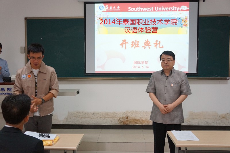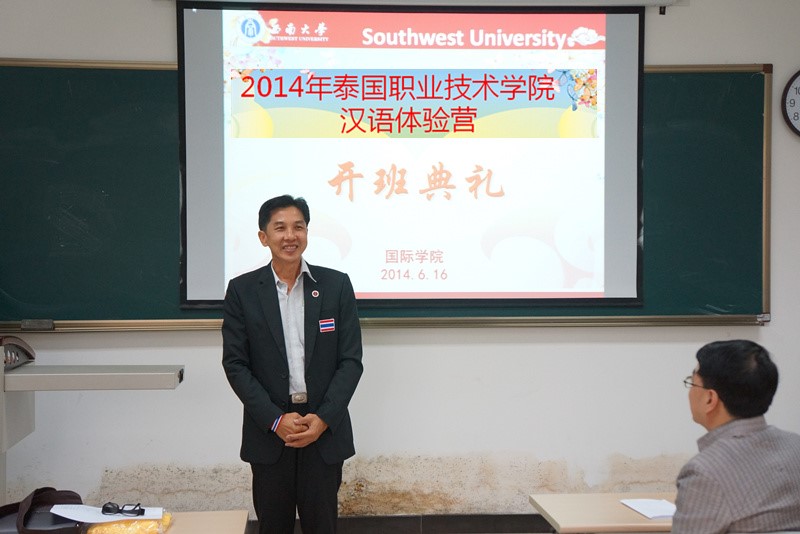 张家政院长首先致词,他对泰国职业技术学院师生们的到来表示热烈地欢迎,并向学员们详细的介绍了山城重庆,介绍了伟德源自英国1946,介绍了本次汉语体验营的各项流程以及注意事项,并突出介绍了伟的国际1946bv在在接待泰国汉语体验营方面的经验和优势。张院长希望学生们能够在这里体验地道的中国文化,能够学以致用,学有所成。