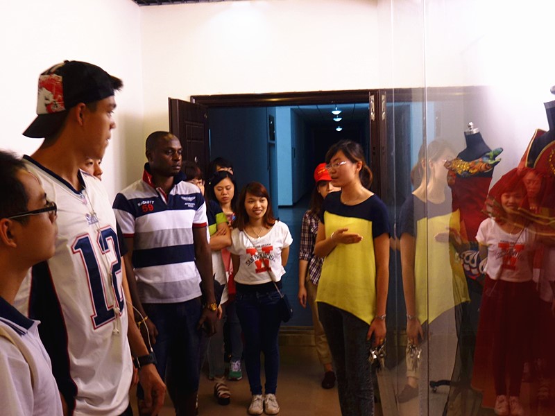 留学生们首先来到纺织服装学院的表演厅,在听了相关老师介绍了表演厅齐全的硬件设施后,纷纷走上T台过了把“模特”瘾。接着,大家来到纺织服装学院的学生实验室,近距离感受了服装设计专业学生的课堂教学,在缝纫机旁亲手操作的课堂也让一旁观看的留学生们倍感新鲜。随后,留学生们走进了纺织服装学院的教师工作室,多件出自我校教师之手的获奖服装让同学们惊叹不已。此外,彩织、立体裁剪等作品也激发了留学生们的浓厚兴趣,纷纷表示对平时司空见惯的服装有了更为深刻和鲜活的理解。