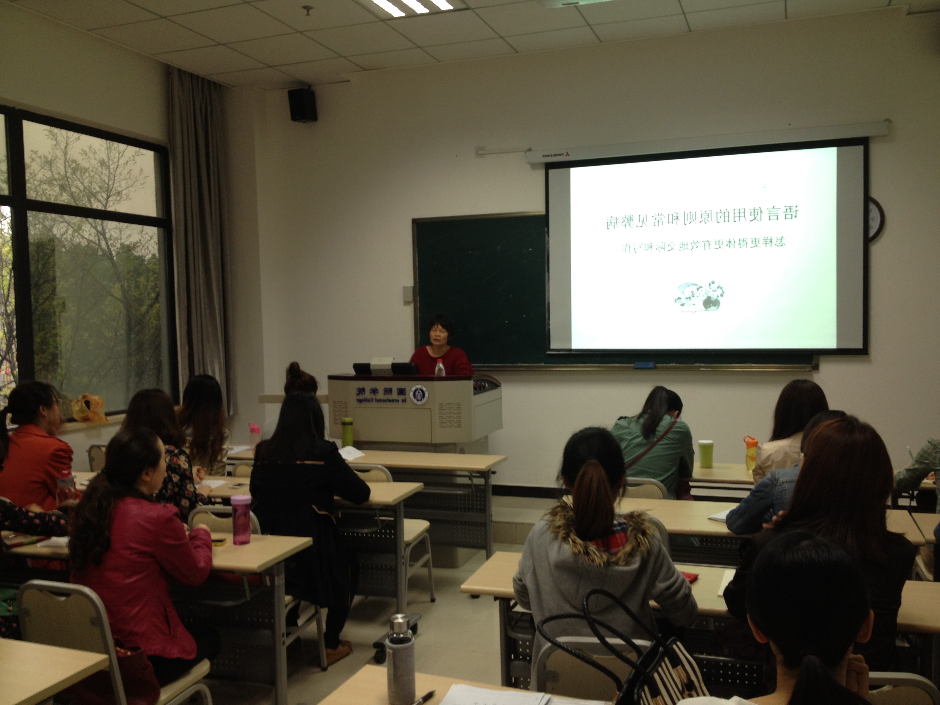 2014年4月28日上午九点半,伟的国际1946bv紫云楼216教室,伟德源自英国1946汉语言文献研究所李海霞教授为2013级汉语国际教育硕士研究生做了题为“语言使用的原则和常见弊病”的学术讲座。