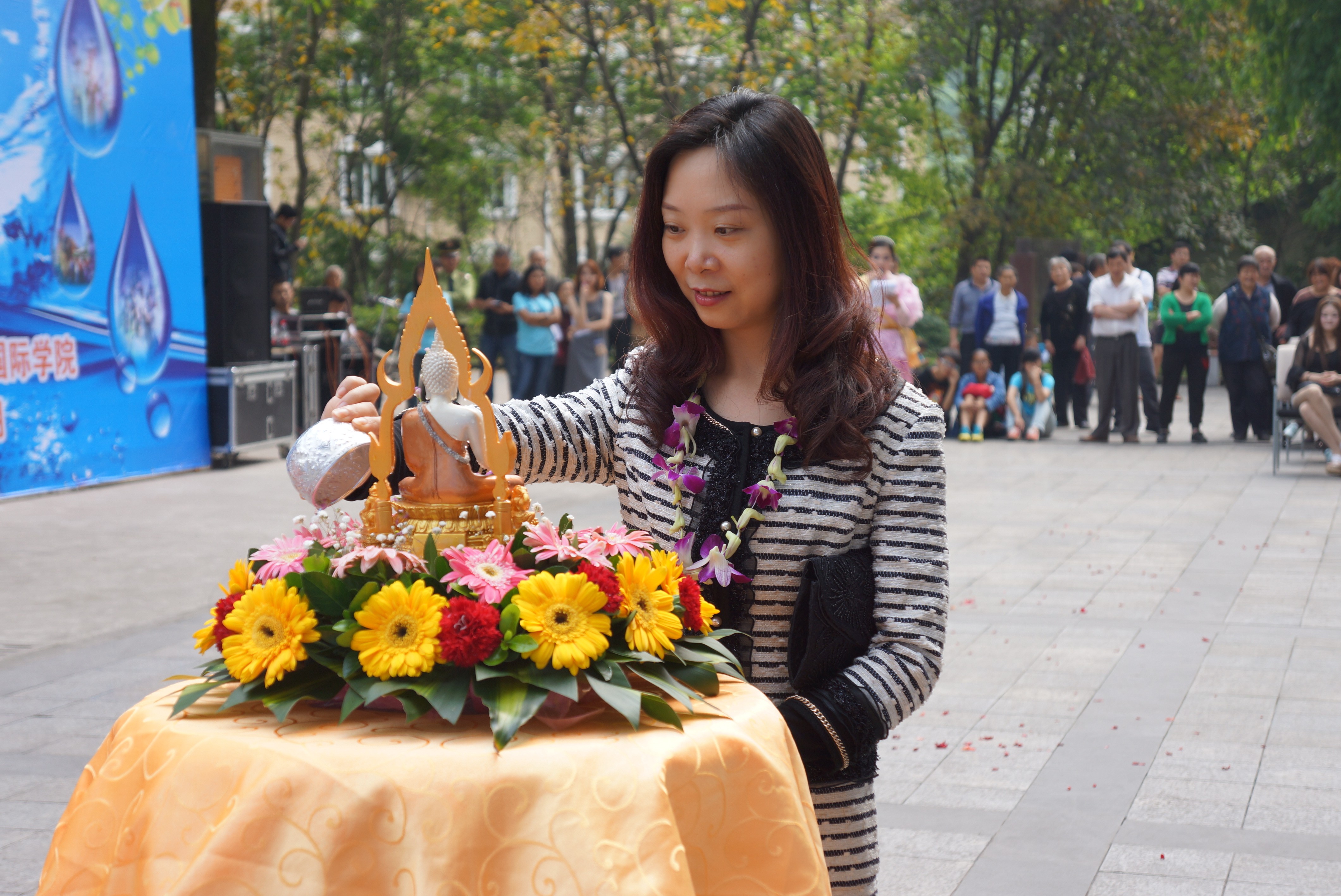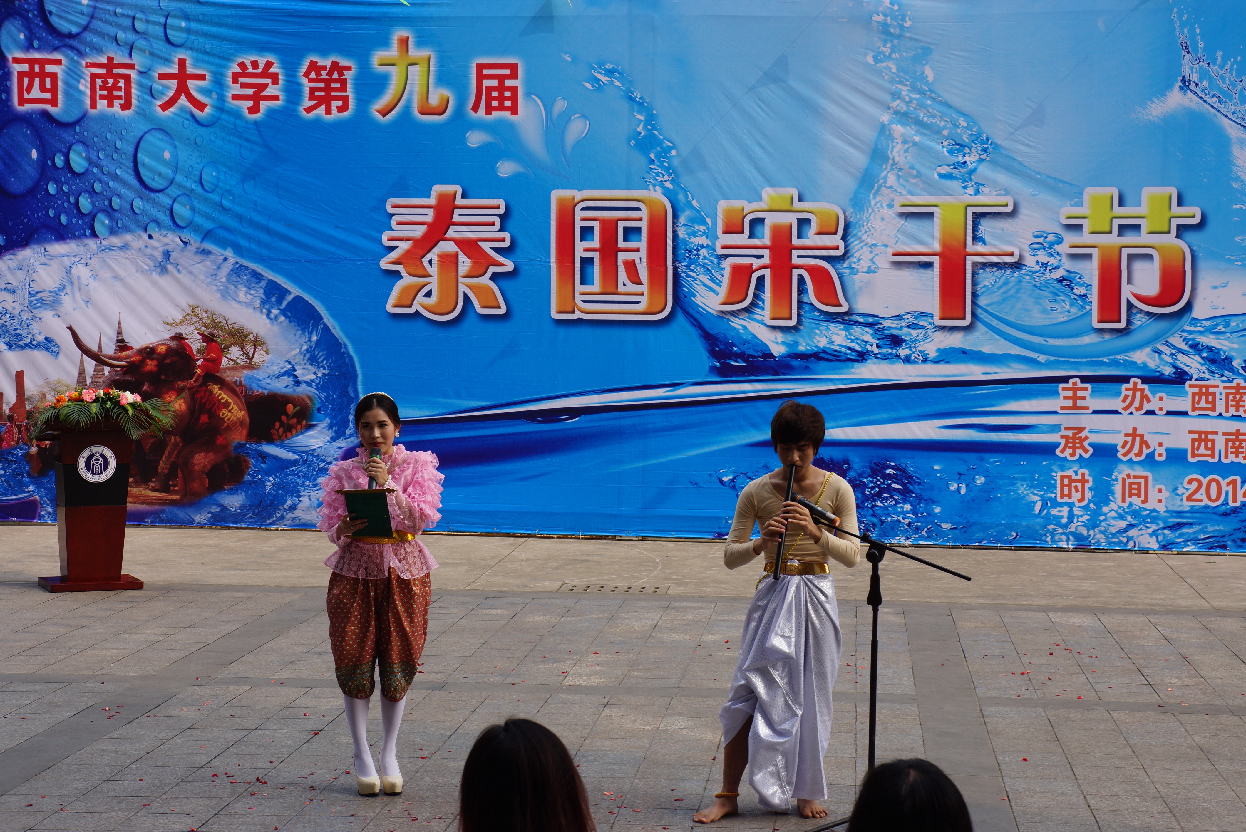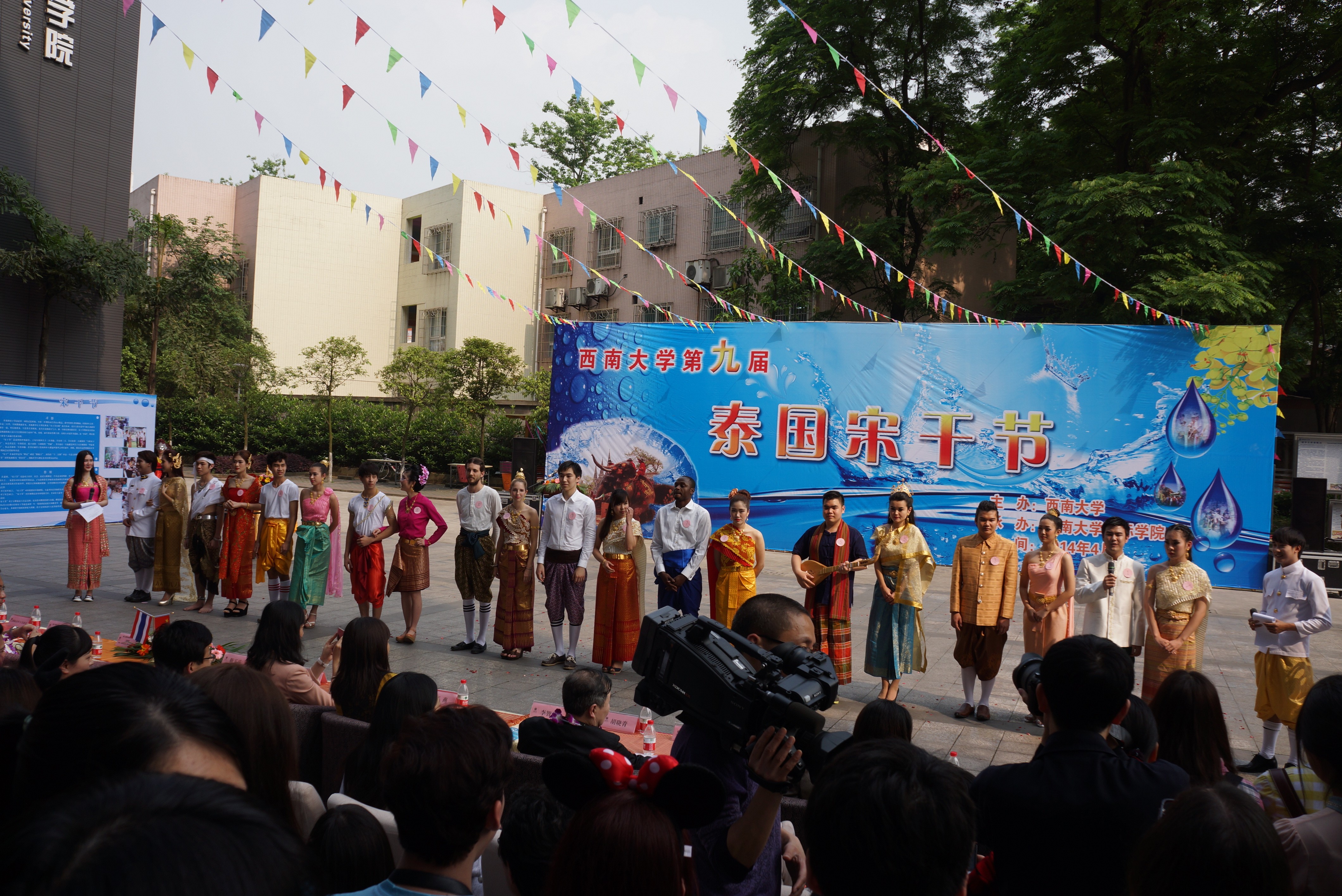 天公作美,连日阴霾的天空露出了灿烂的笑容。数百名中外师生载歌载舞、欢聚一堂,共同欢度泰国宋干节。今年的宋干节格外热闹,不仅有全校170余名泰国留学生精心准备的节目,而且宋干先生、宋干小姐的评选更是吸引了来自意大利、美国、哈萨克斯坦等国的留学生。本次宋干节活动的举办,为在我校学习的泰国学生营造了家的氛围,增加了他们对伟德源自英国1946的热爱之情。