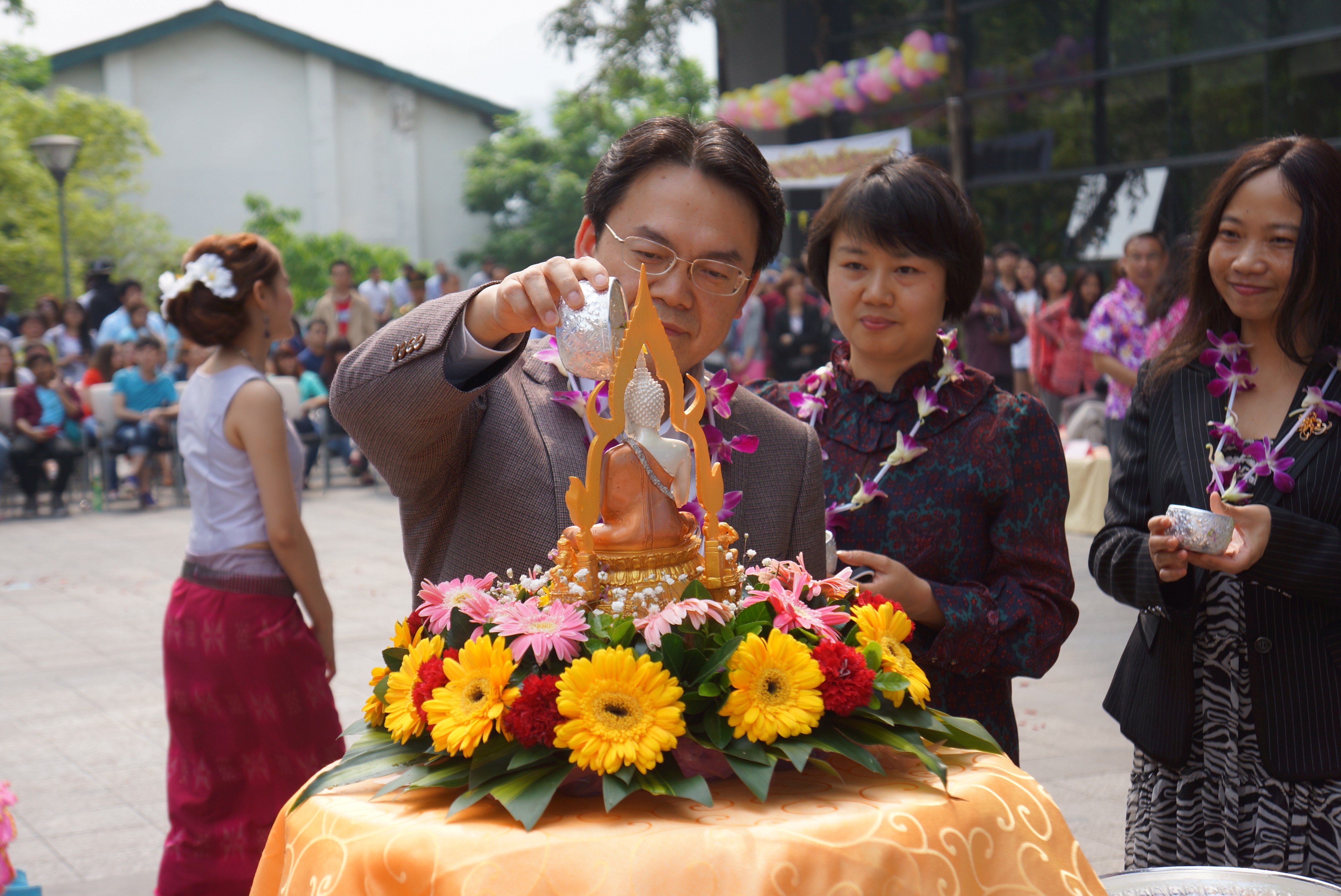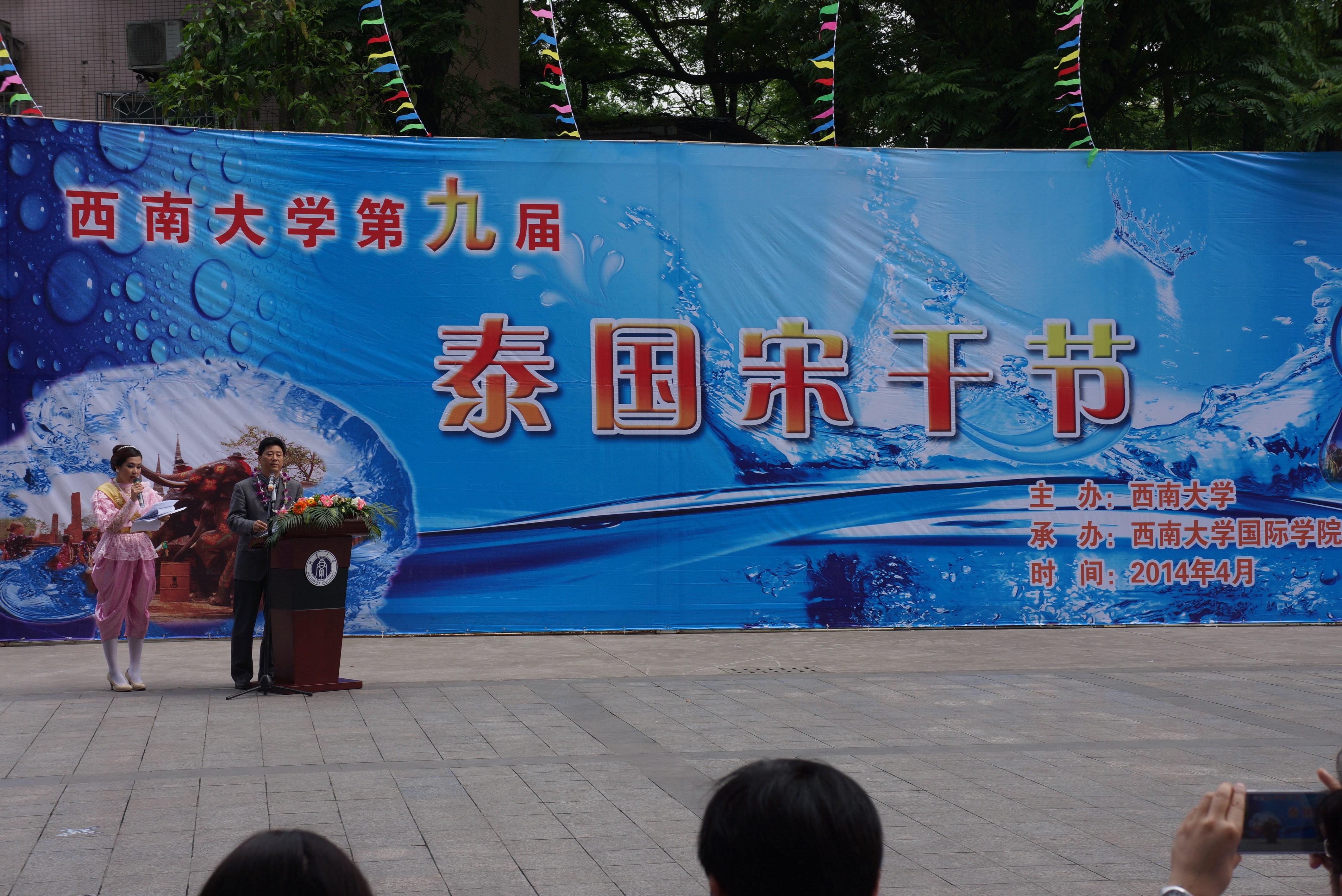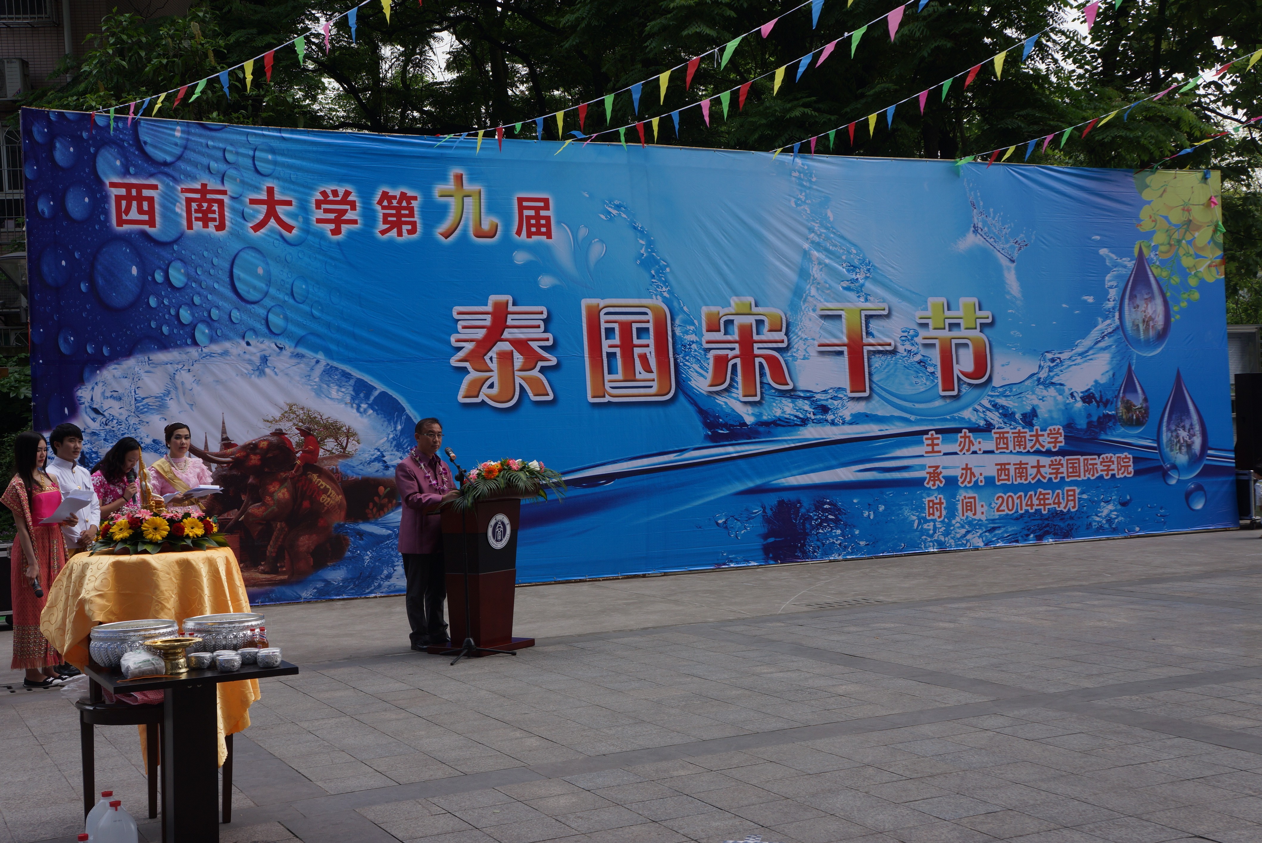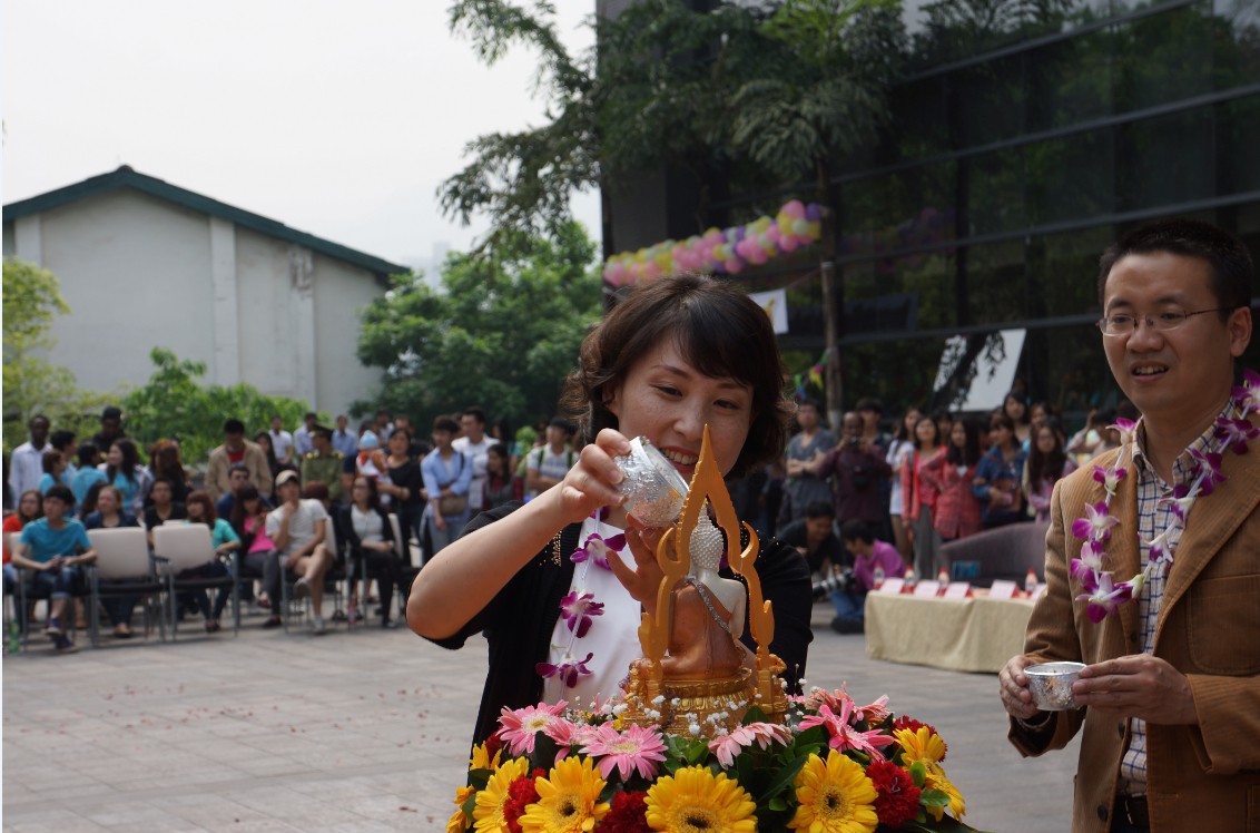 2014年4月24日下午两点半,由伟德源自英国1946主办,伟的国际1946bv承办,泰王国驻成都总领事馆协办组织的“伟德源自英国1946第九届泰国宋干节”隆重举行。泰王国驻成都总领事馆总领事郭梅特先生,副总领事巴诺特先生,重庆市人民政府外事侨务办公室涉外处杨瑜处长、重庆市公安局出入境管理局杨建副局长、伟德源自英国1946副校长靳玉乐教授,以及重庆市教委国际处、北碚区公安分局和伟德源自英国1946相关职能部门的领导应邀出席了本次泰国宋干节活动。