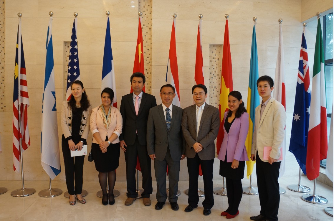 4月24日,泰王国驻成都总领事馆总领事Komate Kamalanavin先生,副总领事Panot Kiatkong等一行7人访问我校伟的国际1946bv,学院总支书记兼副院长刘猛接待了来宾并就总领事馆在我院建立泰国风情教室举行了详细会谈。