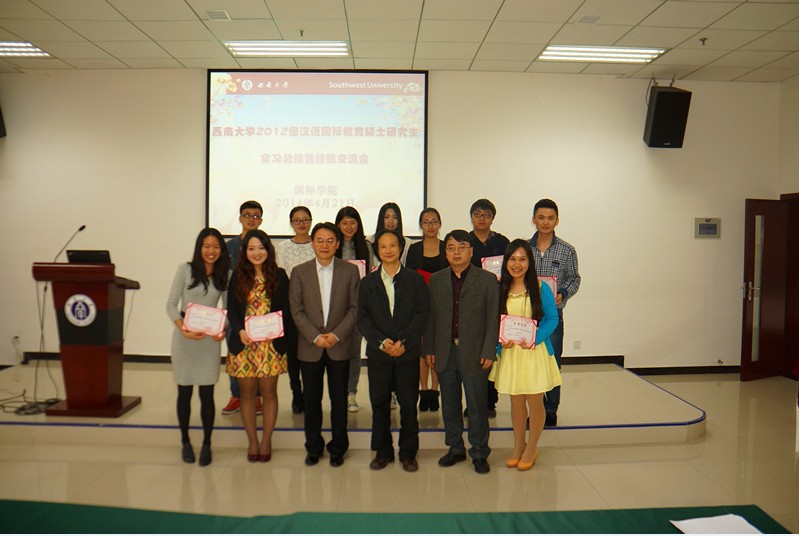 最后,伟的国际1946bv张家政副院长宣读了关于表彰2012级汉语国际教育专业优秀实习生的决定,到会领导为优秀实习生颁发了荣誉证书。实习汇报结束后,2012级与2013级汉语国际教育硕士研究生进行了经验交流。实习总结暨经验交流会在一片欢声笑语中圆满结束。