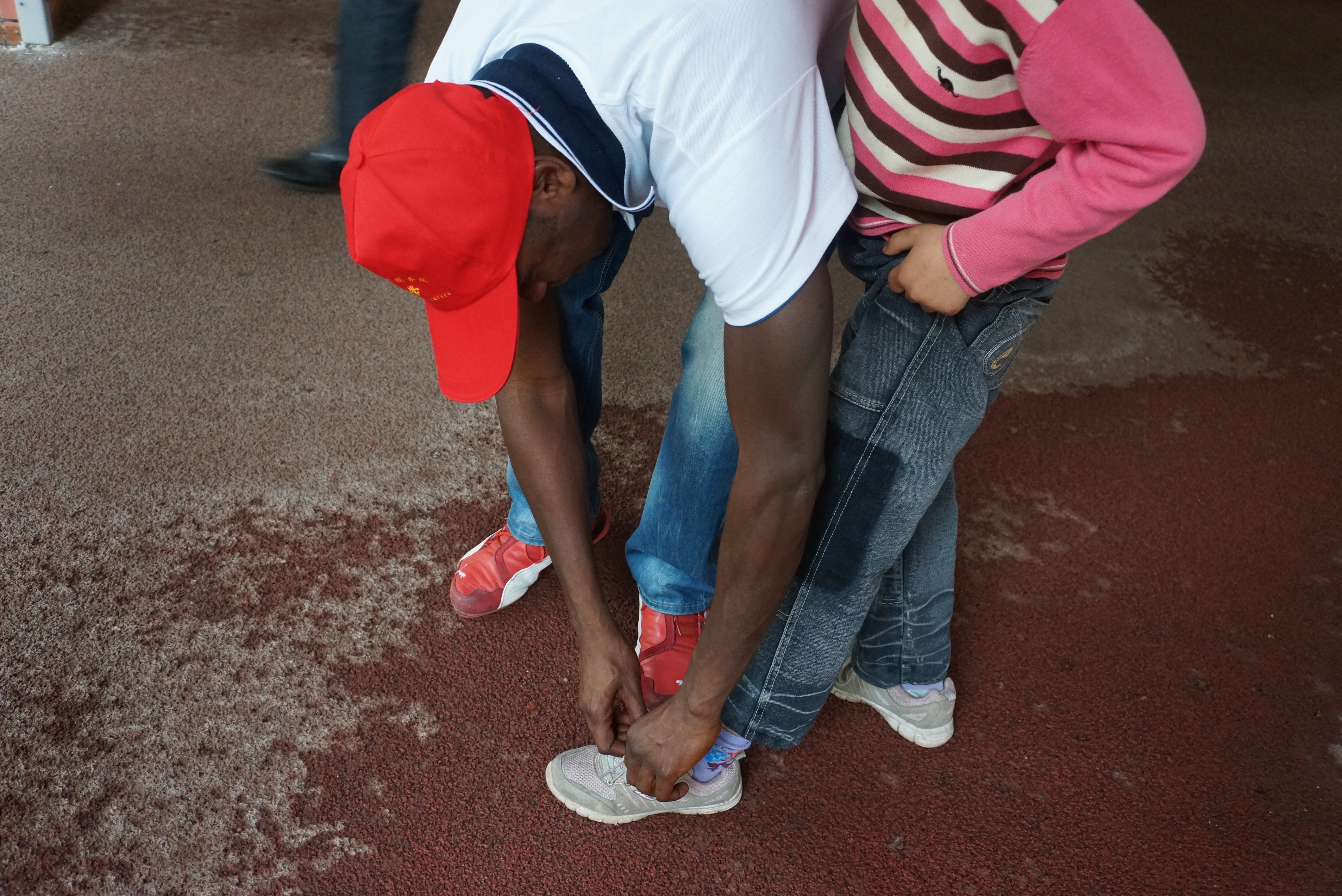 首先,服务队成员们近距离观摩了特教学校的课堂,因为服务队中有很多来自汉语国际教育专业的同学,今后同样要从事教育工作的他们对从事特殊教育的老师表达了崇高敬意。然后,服务队成员们在教室里和孩子们一一结对,做起击鼓传花的游戏,不仅给孩子们带来了非洲手鼓,泰国舞蹈等充满异域特色的表演,还感受到这些特殊的孩子们一样的童真和表演天赋。最后,服务员成员们和孩子们一起在操场上合影留念。