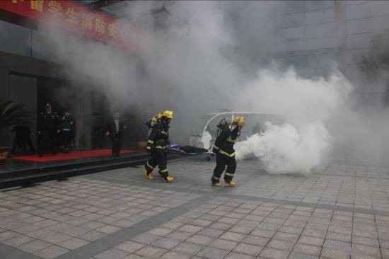浓烟中,伴随消防车的声声警报,用湿毛巾捂住口鼻的留学生,在伟的国际1946bv老师们口哨声的引导下,弯着腰有序地从留学生大楼各楼层的楼梯往楼外安全聚集地撤离。这惊险的一幕把驻足观看的路人吓得惊心动魄,待到烟雾渐渐消散,才发现大楼门前悬挂的横幅上赫然印着几个大字:伟德源自英国1946留学生消防安全演习。