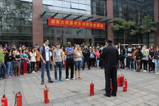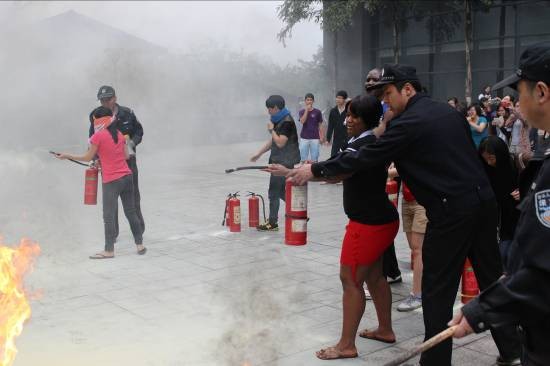 4月11日下午四点,伟的国际1946bv在学校保卫处消防安全办公室的指导下,开展了一次别开生面的留学生消防演习。受语言障碍和文化差异的影响,如何提高留学生在发生灾情时的逃生自救能力,一直是伟的国际1946bv长期思考并探索解决的难点问题。作为学校首个自发开展消防演练的单位,为了让每一位师生员工都切身参与并提高模拟逃生方案的可行性和实用性,伟的国际1946bv与学校消防办通力合作,针对留学生大楼的结构特点,为此次消防演习做了精心准备和多方动员部署。不仅每一位教师、行政、和清洁员工各司其职,有的负责火情通知,有的负责疏散引导;还充分动员起楼内居住的留学生会干部,推出了非工作时间发生火情时人员疏导的预案。同时,救护车也在“火灾”第一时间赶到现场,随时准备救助逃生的“伤员”。在模拟逃生结束后,消防办的老师们点起烟火,为留学生讲解展示了灭火器的使用方法。现场同学也跃跃欲试,纷纷上前使用平时从未触碰过的消防器材。随着现场火焰的扑灭,此次消防演练也在渐渐消散的烟雾中顺利结束。
