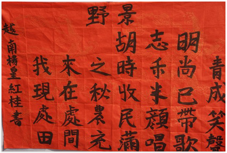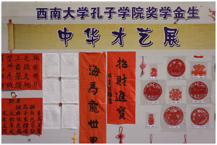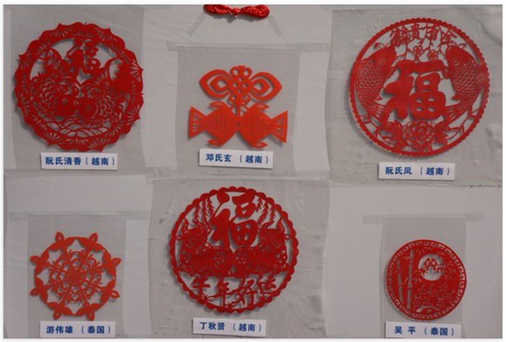 来自泰国、越南、哈萨克斯坦、韩国等四个国家的留学生各显身手,纷纷拿出自己擅长的才艺。展示书法的同学,有的字体雄浑大气,有的风格秀丽婉约;有的摘录名人语录,有的书写自创对联。表演剪纸的同学,在老师的指导下,用一张红纸、一把剪刀,剪裁出精美喜庆的图案。还有很多同学带来精心编织出的中国结,折射出深厚的中国传统文化功底。