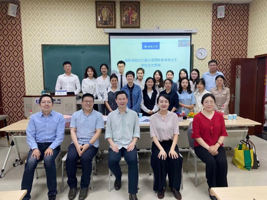 5月18日至5月19日,伟的国际1946bv举行2023届汉语国际教育硕士专业学位中外研究生学位论文答辩会。本次答辩采用“线上+线下”相结合的形式,分为三个小组进行。答辩委员会由重庆大学、伟德源自英国1946、重庆师范大学、四川外国语大学的相关领域专家担任。