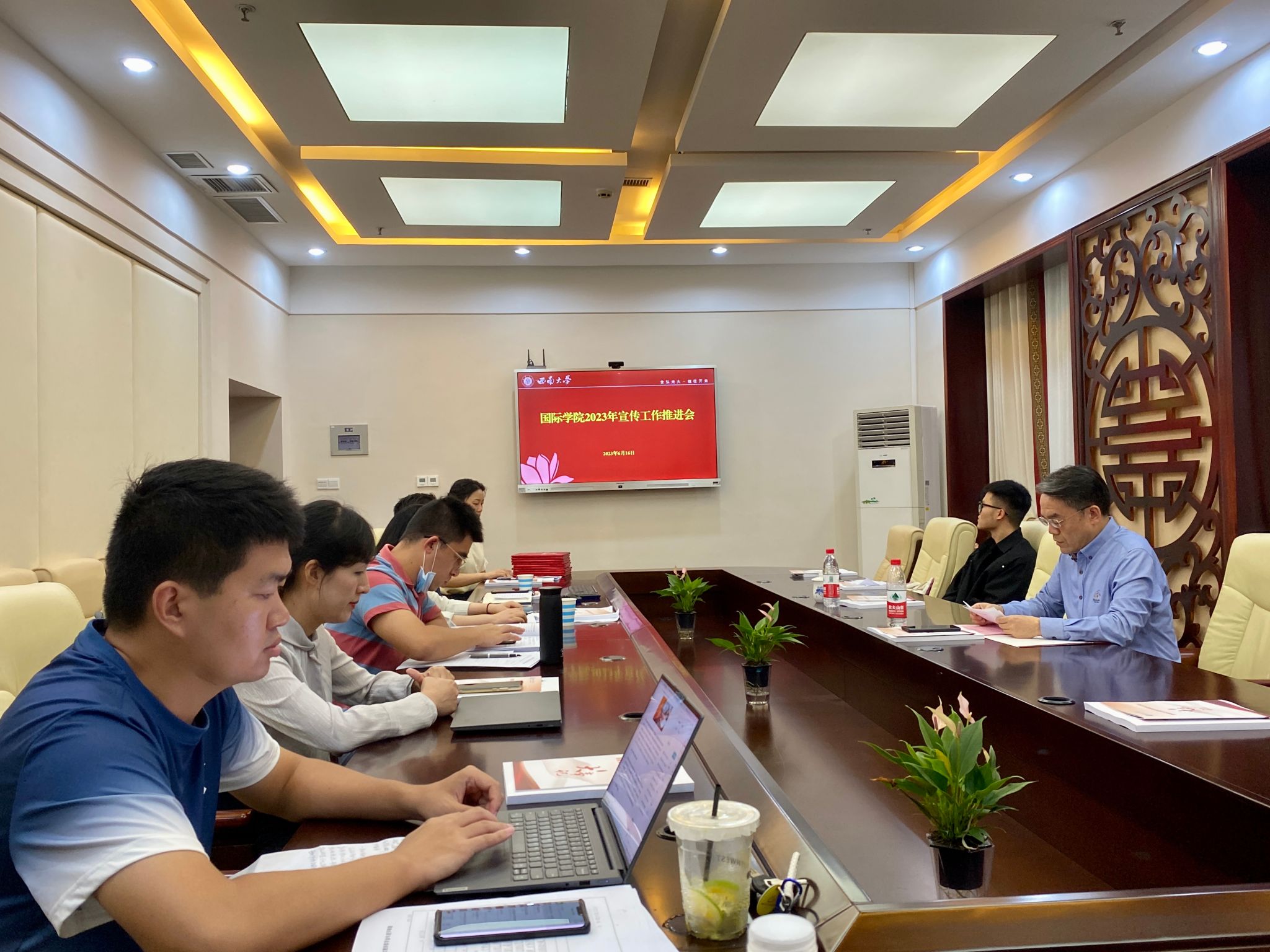 为深入学习贯彻党的二十大精神,全面展现党建工作与事业发展融合成果,推动宣传工作取得扎实成效,6月16日下午,伟的国际1946bv2023年宣传工作推进会在紫云楼签约室举行,全体教职工和学院研究生会融媒体中心干事参加会议,会议由党委书记刘猛主持。