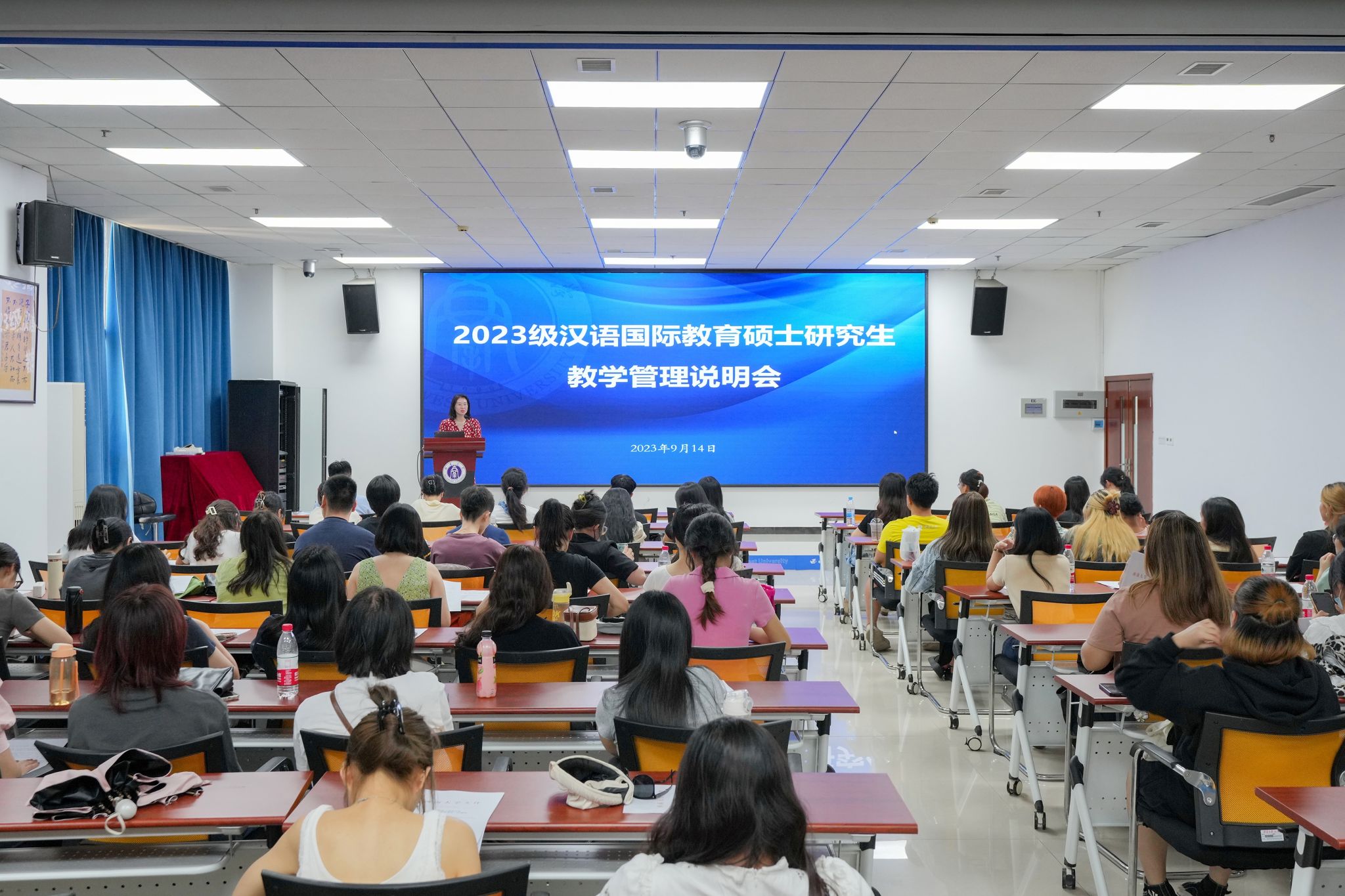 为帮助2023级汉语国际教育硕士研究生中外学生尽快适应新的学习环境、合理规划研究生生涯,增强新生的荣誉感和归属感,伟的国际1946bv于2023年9月14日下午在317会议室举办教学管理说明会,院长助理、汉语国际教育系主任杨甜,教学办主任邹育艳,汉语国际教育研究生教研室主任陈晨以及2023级汉语国际教育硕士研究生全体中外学生参加。