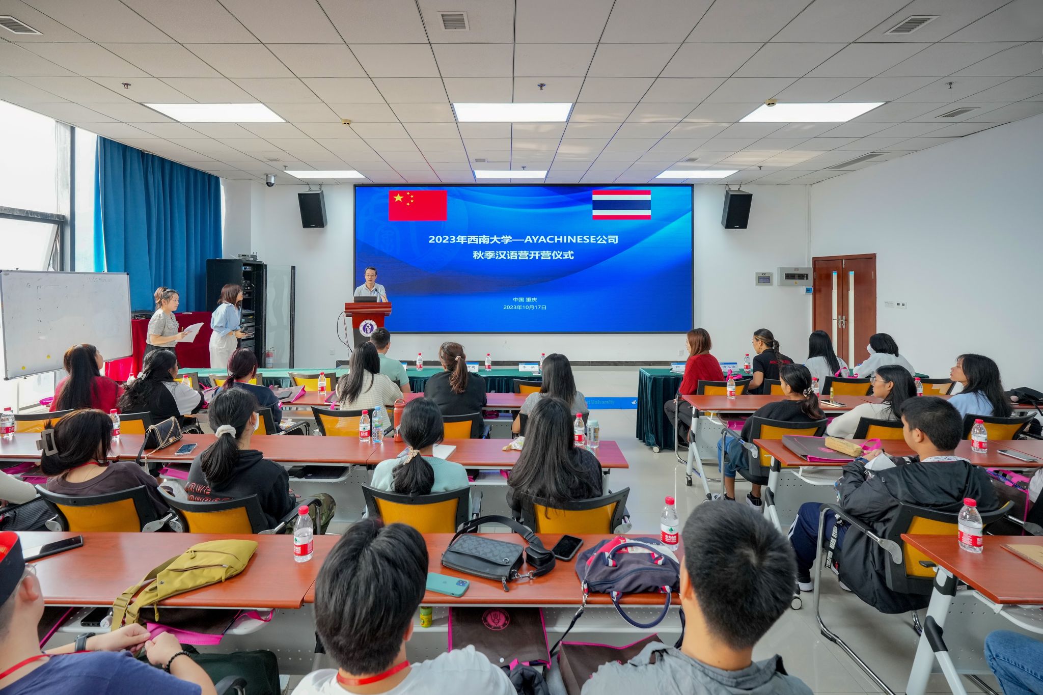 10月17日上午,“2023伟德源自英国1946--AYACHINESE公司D团秋季汉语营”开营仪式在伟的国际1946bv紫云楼317室举行。伟的国际1946bv副院长李航,泰国AYACHINESE公司董事长阿雅女士、泰国AYACHINESE公司国际协调员方玉洁女士、泰国AYACHINESE公司两位领队,伟的国际1946bv教师代表舒敬斌以及28名泰国学生参加开营仪式,仪式由伟的国际1946bv教学办公室刘燕妮主持。