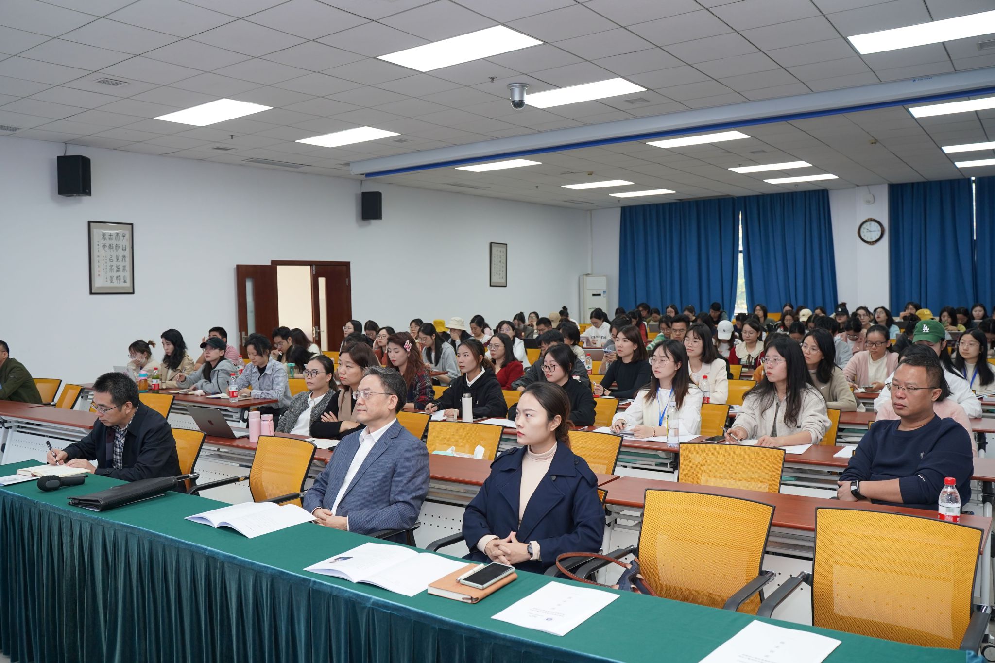 在校参加培训的成都市新都区教科院附属小学校教师国际理解素养提升研修班的老师们一同聆听讲座。