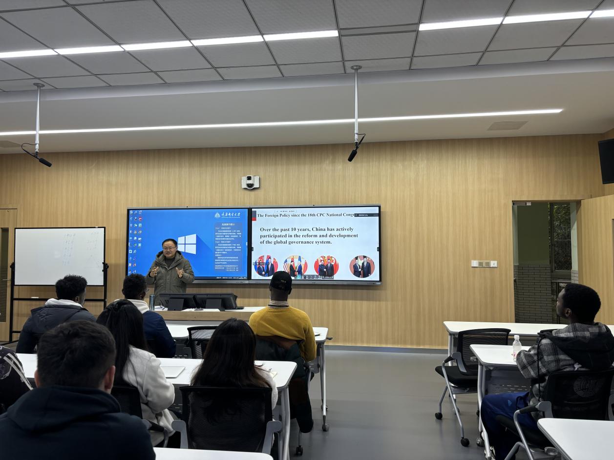 据悉,该讲座是《当代中国故事:光荣与梦想》全英文系列讲座之一,由学校伟的国际1946bv发起,重庆市高等教育学会外国留学生教育管理分会组织开展,通过讲故事的方式,向在渝高校国际学生讲述当代中国故事,介绍中国国情和政策,传播中国文化和增进中外人文交流。