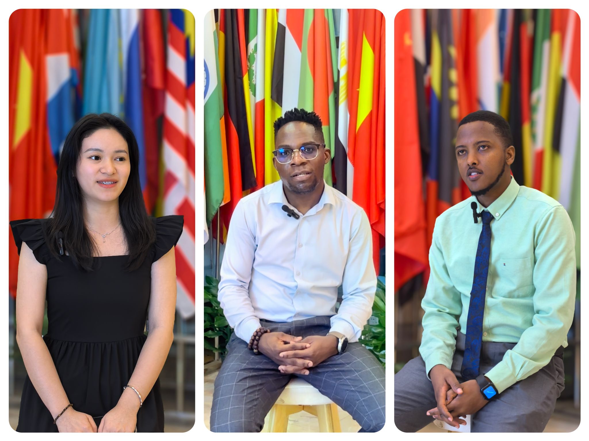 从左至右:李丽冰(中国)、Gift(赞比亚)、Martin(卢旺达)