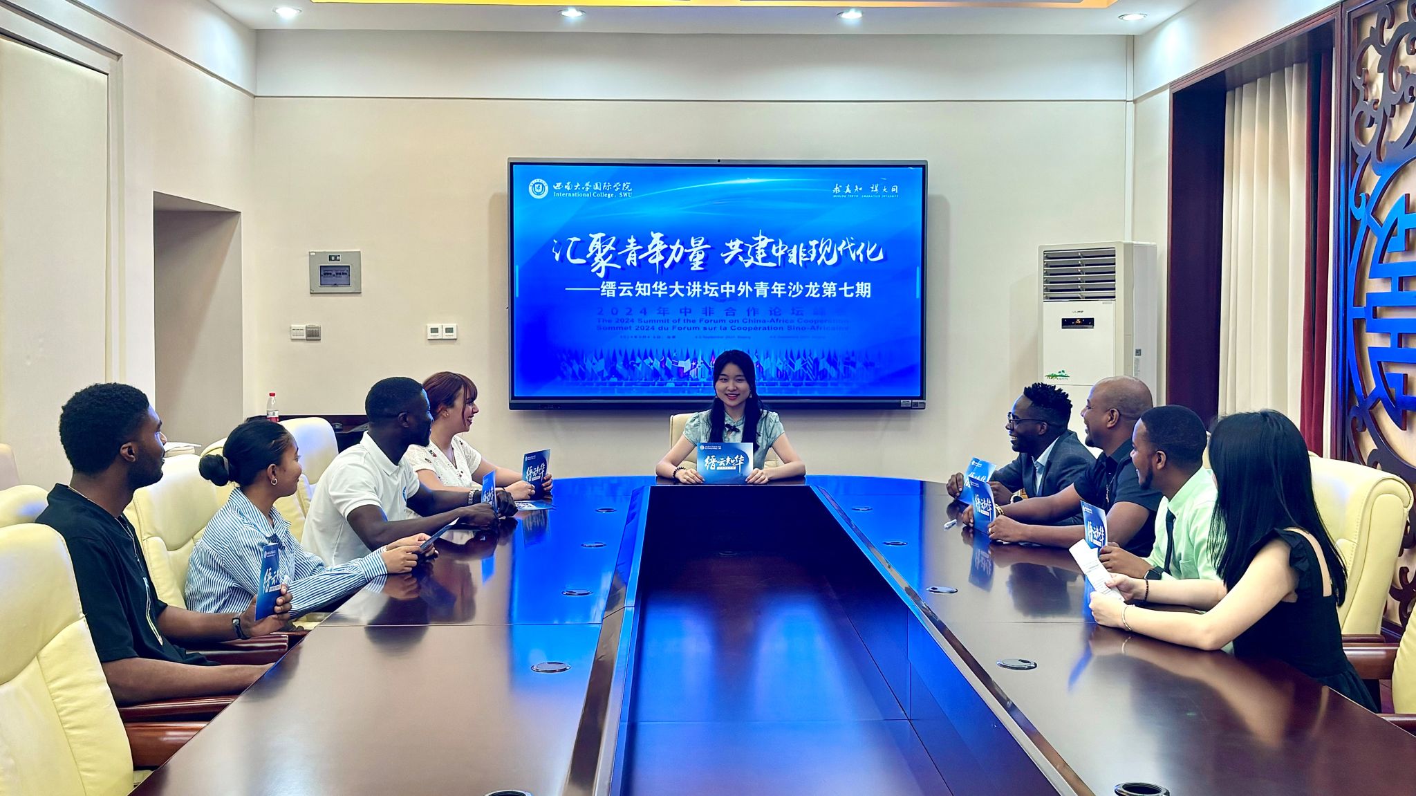 “中非友好,穿越时空。跨越山海,薪火相传”,为庆祝中非合作论坛北京峰会圆满召开,2024年9月8日下午,“缙云知华”大讲坛中外青年沙龙第七期在紫云楼一楼会议室举办,主题为“汇聚青年力量,共建非洲现代化”。8名中外青年学生代表共同参与对话,沙龙由中国研究生师晓萱主持。