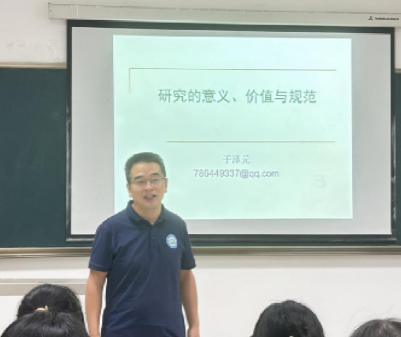 于泽元院长以一则小故事引导同学们围绕“研究的意义、价值与规范”进行思考。他指出,世界本身是一个“无反思的世界”“偶然的世界”,人自身只是被世界所决定着,通过研究,人们便可以赋予世界的意义,使得世界成为“我”的世界。