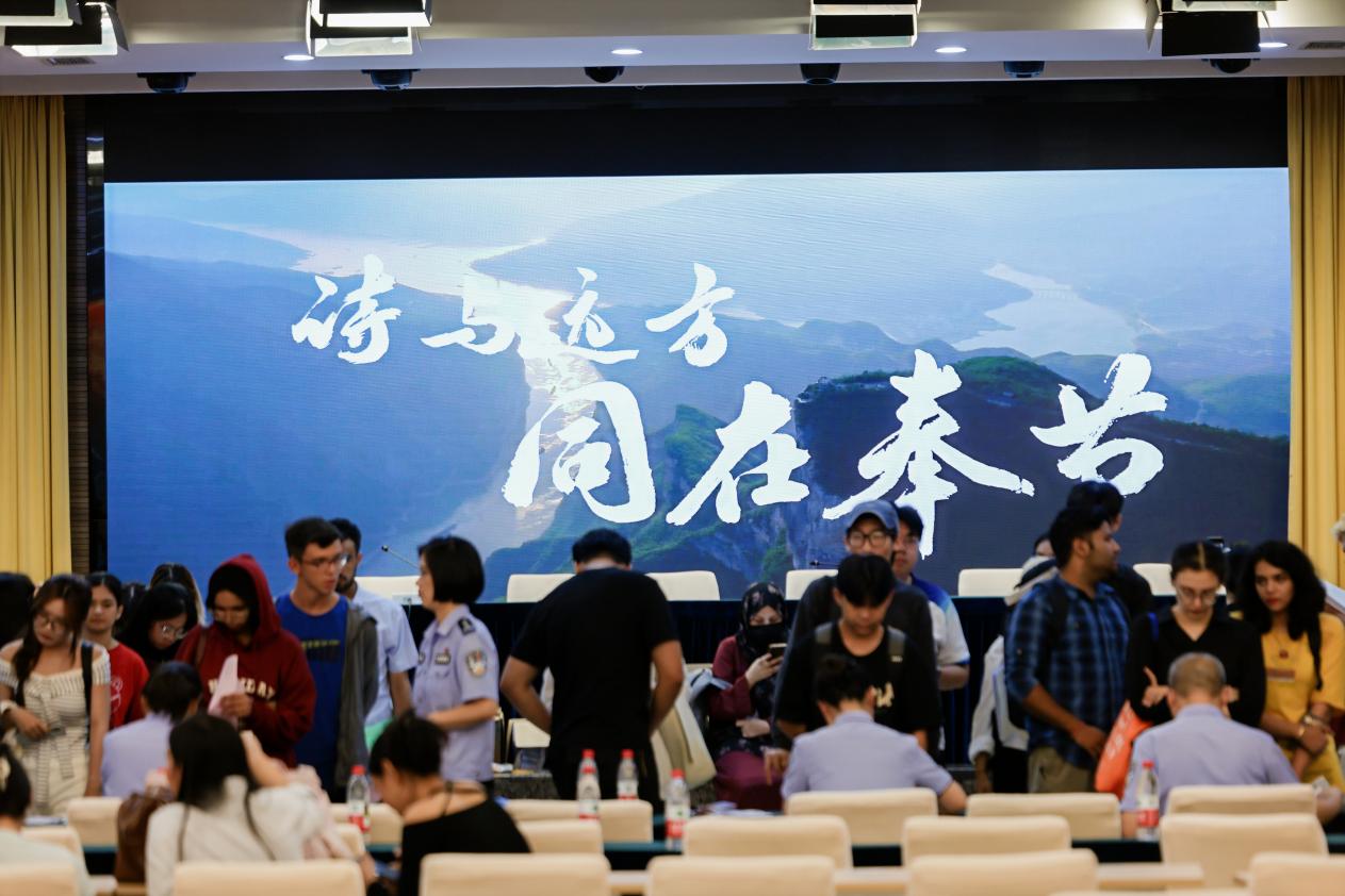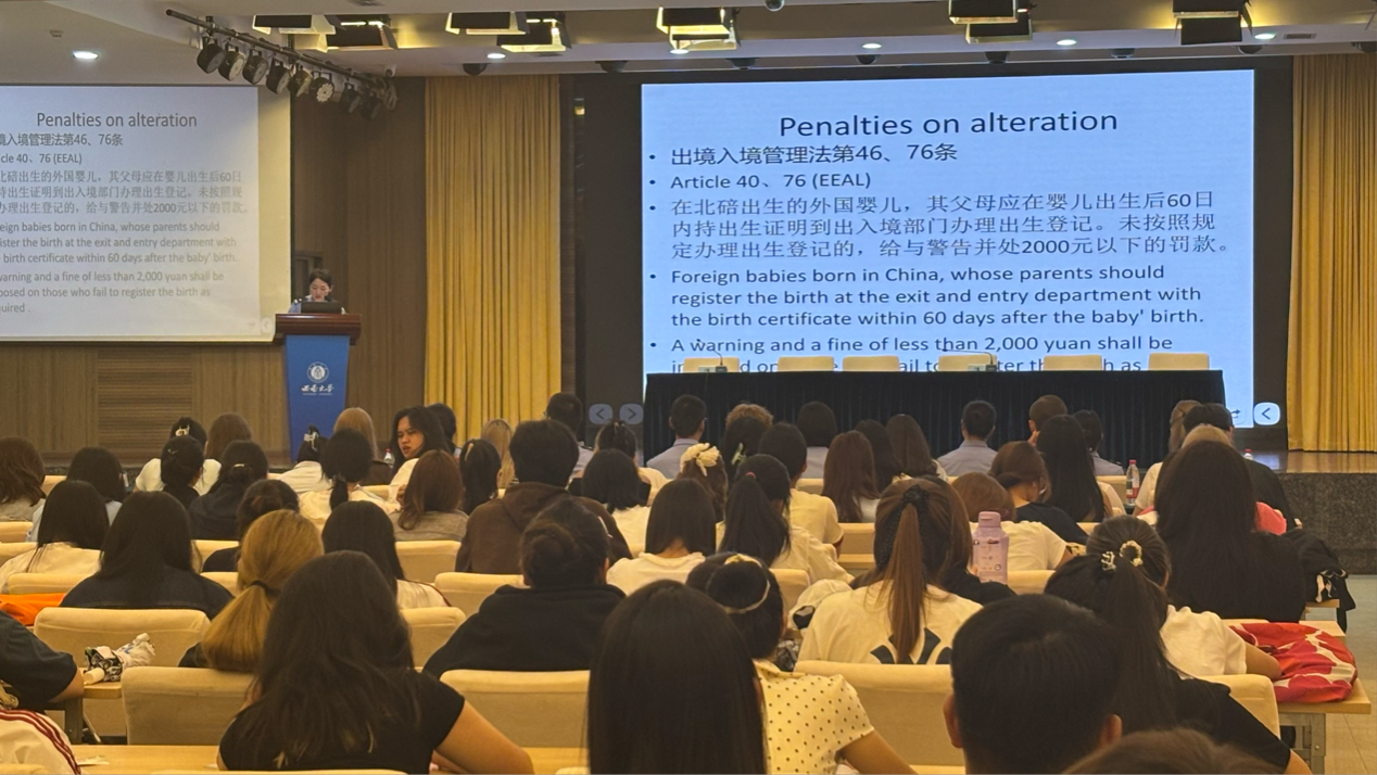 为帮助2025级国际学生新生更好了解中国相关法律法规及签证政策,顺利开启在华学习生活,2025年9月12日,学院特邀重庆市公安局出入境管理局境外人员管理支队领馆大队舒林大队长一行来校,为全体新生举办了专场法律法规宣讲会,并进行现场签证面签工作。