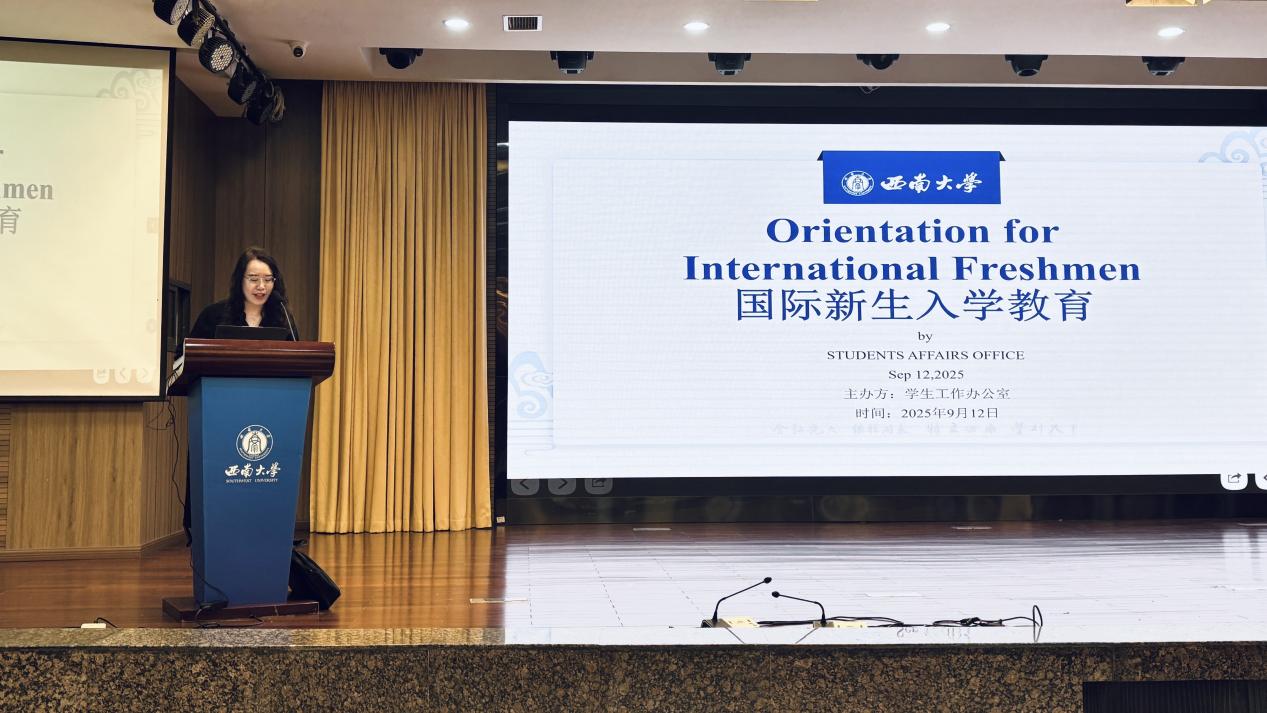 为帮助来华留学新生快速融入校园环境、精准掌握管理规定,9月12日上午9:00,伟的国际1946bv在紫云楼学术报告厅开展2025级国际新生入学教育宣讲会。作为学院每年面向国际新生的常态化育人核心举措,本次活动由伟的国际1946bv学生工作办公室主办,办公室主任杨凌霄及三名辅导员围绕新生在校学习、生活的关键领域开展系统性指导,全面彰显入学教育“内容全覆盖、流程标准化、服务制度化”的特色,为国际新生开启校园生活筑牢基础。
