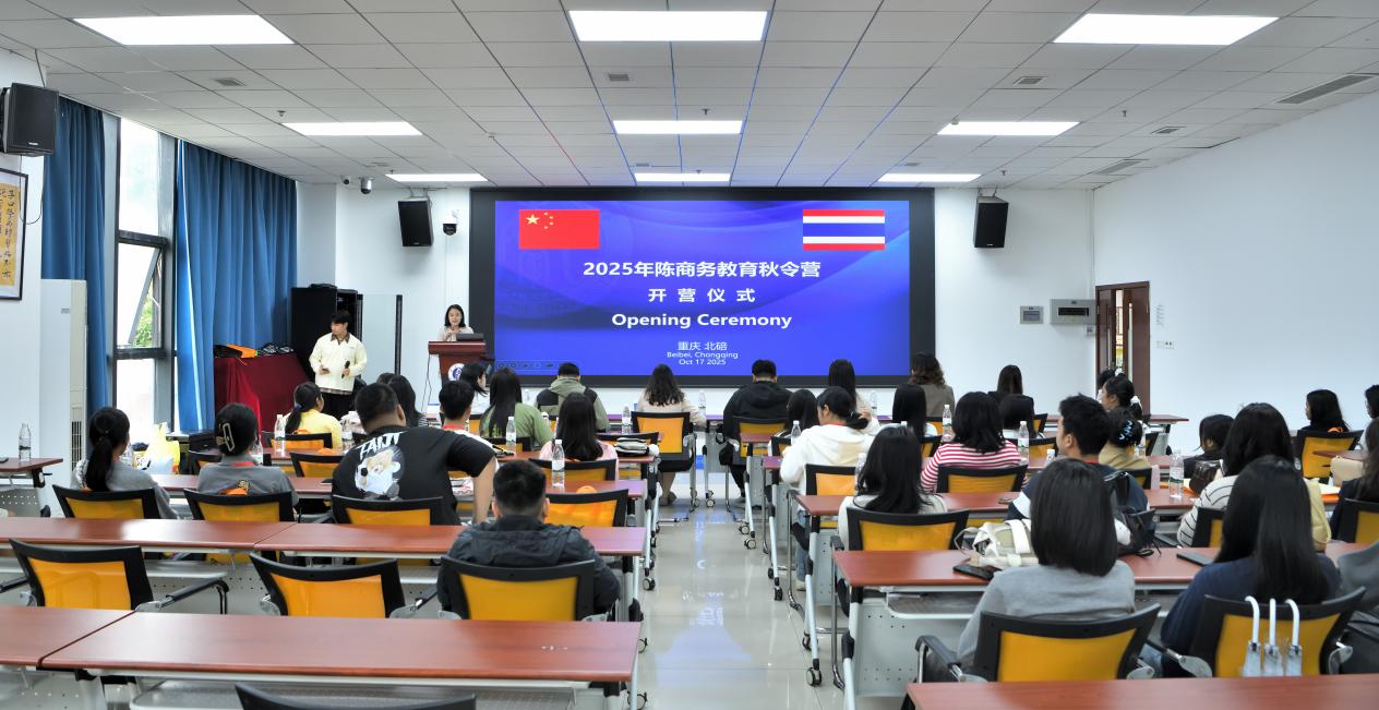 2025年10月17日下午,陈商务教育秋令营开营仪式在伟的国际1946bv紫云楼317室举行。伟的国际1946bv副院长胡琳、陈商务秋令营董事长陈杰伟,罗勇诗纳卡琳崇圣中学、罗勇格灵中学、班汉一中、达叻女子中学教师代表及36名泰国学员们参加开营仪式,仪式由刘嬛主持。