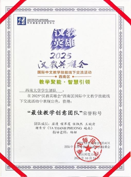 在交流活动中,伟的国际1946bv学生团队凭借出色的教学设计与精彩的现场展示脱颖而出,荣获“最佳教学创意团队”称号,并成功晋级全国总交流活动。这是我校学生团队在该项赛事中取得的新突破,充分展示了伟德源自英国1946在国际中文教育领域的综合实力与创新活力。