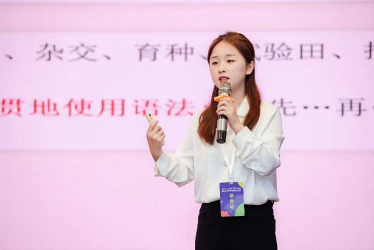 在活动中,任飘然同学以“袁隆平与杂交水稻——禾下乘凉梦与全球无饥梦”为主题,从学情分析、教学理念、教学目标、教学过程、教学亮点、教学评价等方面出发,进行了精彩的说课展示;王婉清同学在团队成员的配合下,选取“实操融合”和“数智赋能”两个教学亮点进行了10分钟的现场教学展示。团队成员在比赛中沉着稳重、自信大方,充分展示了新时代青年在国际中文教学技能方面的专业能力和创新精神。