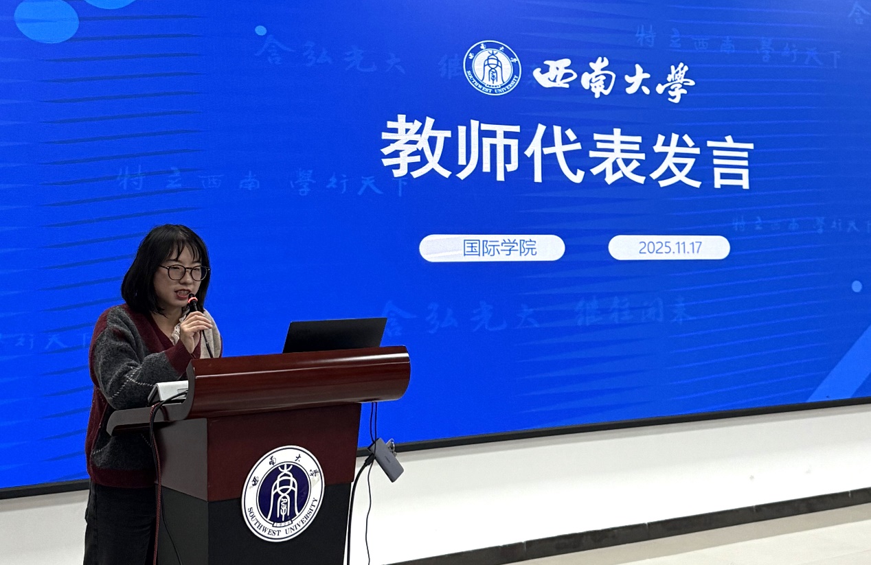 实习指导教师代表罗昕老师分享了指导心得。她回顾了学生们在实习中的表现,指出大家将语言知识应用于真实场景,如汉语教学、翻译、文化传播等,克服了初期沟通紧张和工作流程陌生等挑战,展现出强大的适应力和韧性。罗老师表示,实习经历不仅淬炼了学生的专业技能,也启发了教学创新,未来将引入更多跨文化实践案例。