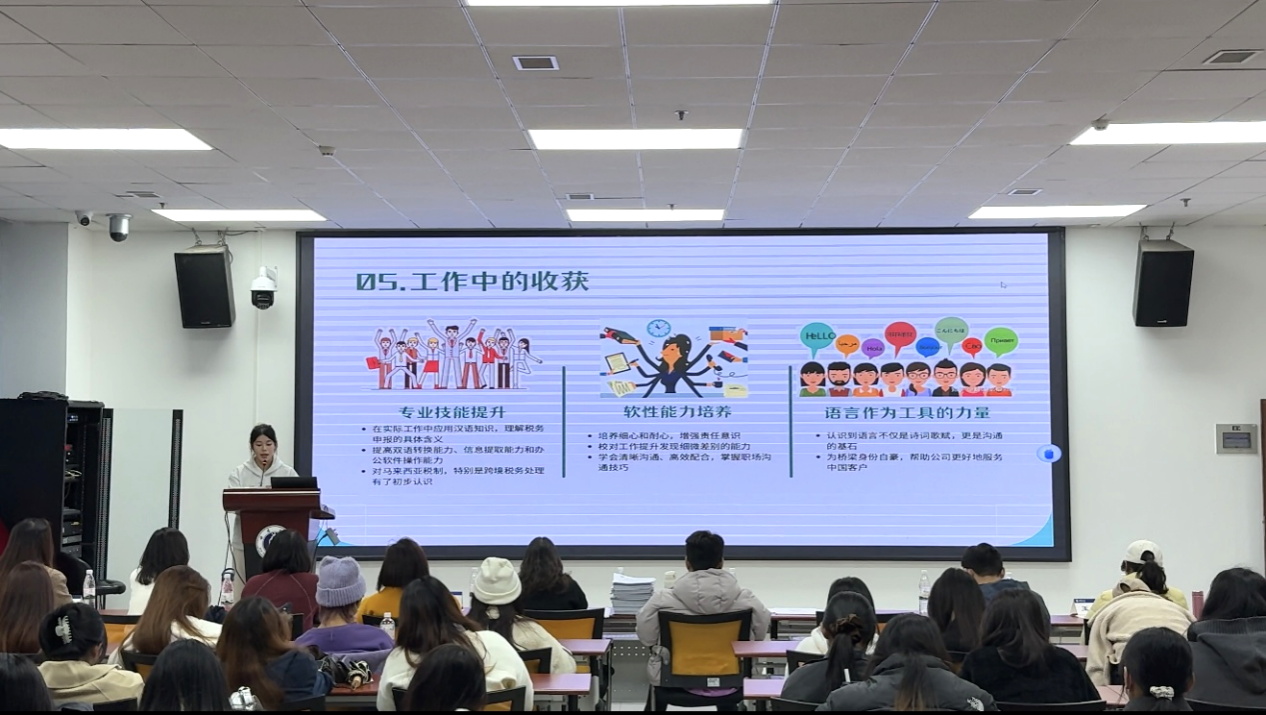 此次实习总结暨经验交流会的成功举办,不仅为同学们提供了展示自我、交流经验的平台,更是对实习生实习成果的肯定和鼓励,体现了学院加强实践教学、培养高素质本科国际人才的重要举措。