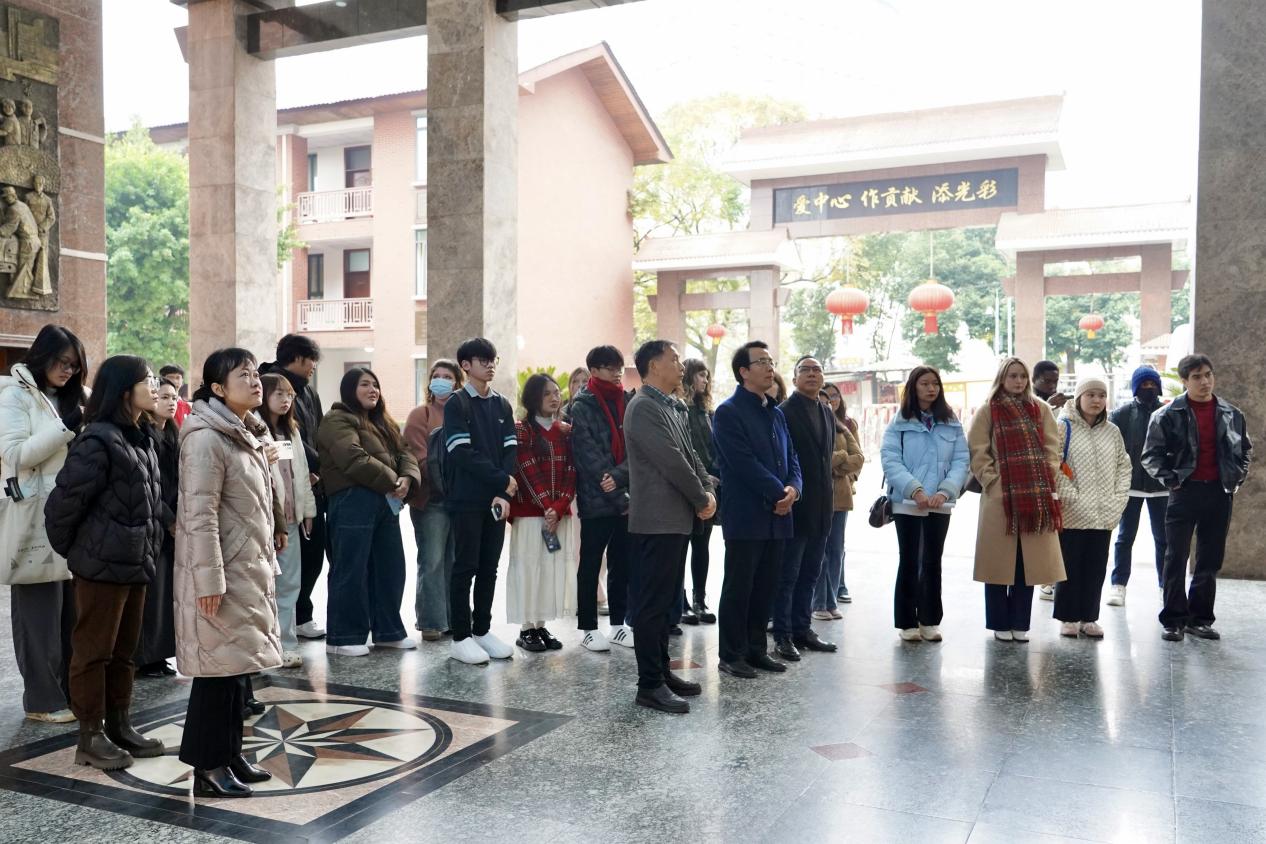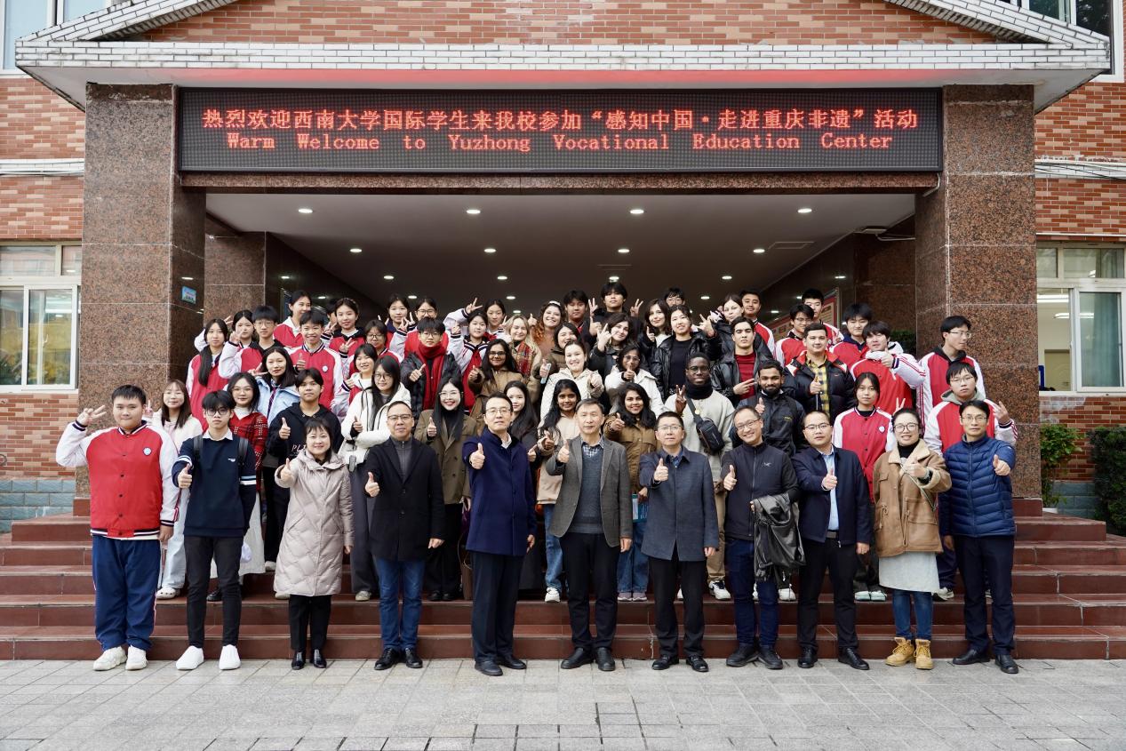 2025年12月5日上午,学院“中国通 重庆行”系列活动、“感知中国·走进重庆非遗”文化实践课程在渝中职教中心顺利举行。来自白俄罗斯、科特迪瓦、俄罗斯、土库曼斯坦、斯里兰卡、泰国、越南、哈萨克斯坦等8个国家的24名国际学生,在党委书记张袁松、副书记副院长耿军、培训中心主任王鹊的带领下,走进校园,沉浸式感受中华优秀传统文化的独特魅力。