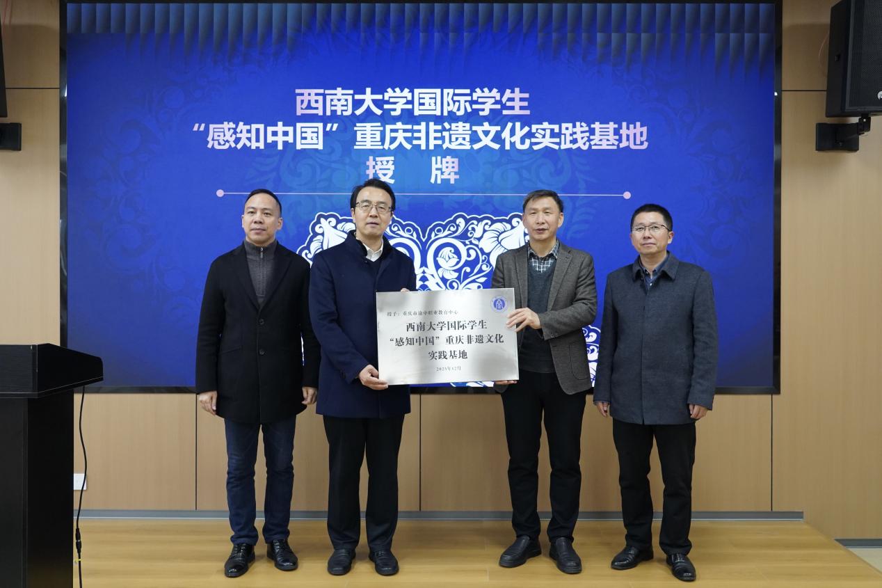 在随后举行的挂牌仪式上,伟的国际1946bv正式在渝中职业教育中心设立“‘感知中国’重庆非遗文化实践基地”。张袁松书记在致辞中表示,非物质文化遗产是中华文明绵延传承的生动见证,重庆非遗更是巴渝文化的重要载体。基地的建立,不仅是落实国家留学基金委“感知中国”品牌建设的重要举措,更是推动国际中文教育与职业教育融合发展的一次创新探索。他期待双方以此为起点,在来华留学生培养、课程共建、人文交流等领域开展长期深度合作,共同讲好中国故事、传播重庆声音。