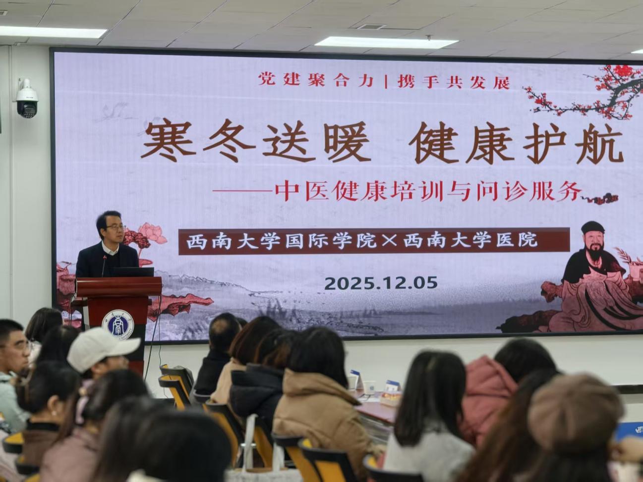 为守护师生身心健康,弘扬中华优秀传统文化,12月5日下午,学院联合学校医院在紫云楼317教室成功举办“寒冬送暖,健康护航”中医健康培训与问诊服务活动。学校医院中医专家团队受邀莅临,学院师生积极参与,活动现场暖意融融、气氛热烈。