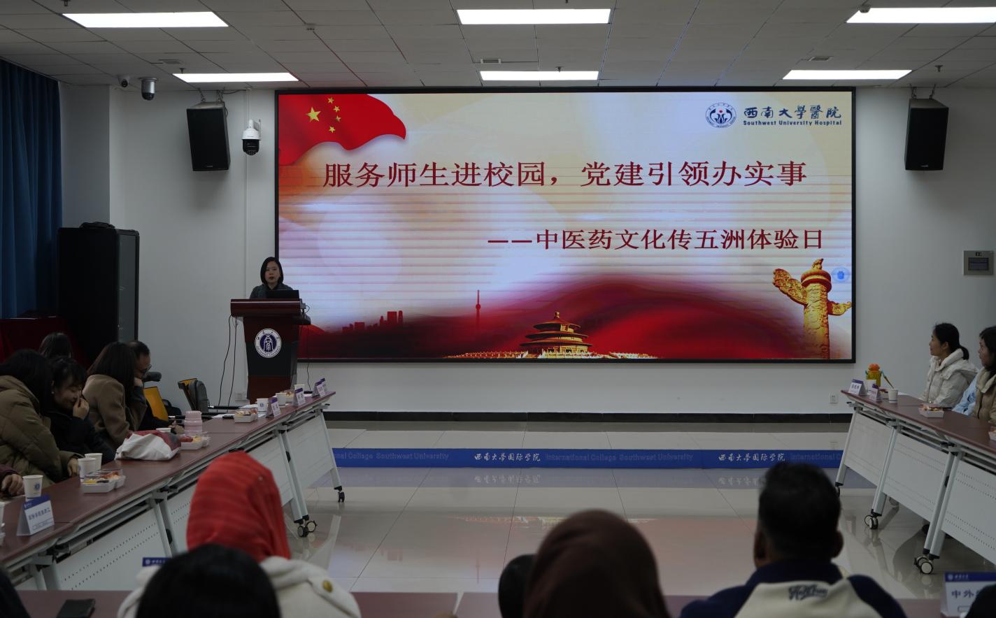 随后,学校医院院长游莉代表学校医院登台致辞。她表示,学校医院始终致力于为全校师生的健康提供坚固的医疗后盾,并积极推进中医走进师生身边。为更好地服务国际学生,医院正着力打造一支精通英语、日语、法语等多语言的专业医疗团队,同时不断探索畅通服务通道、满足个性化需求的有效路径,努力提供既有温度又具国际化“风度”的医疗健康服务,让每一位学子都能感受到贴心的关怀。